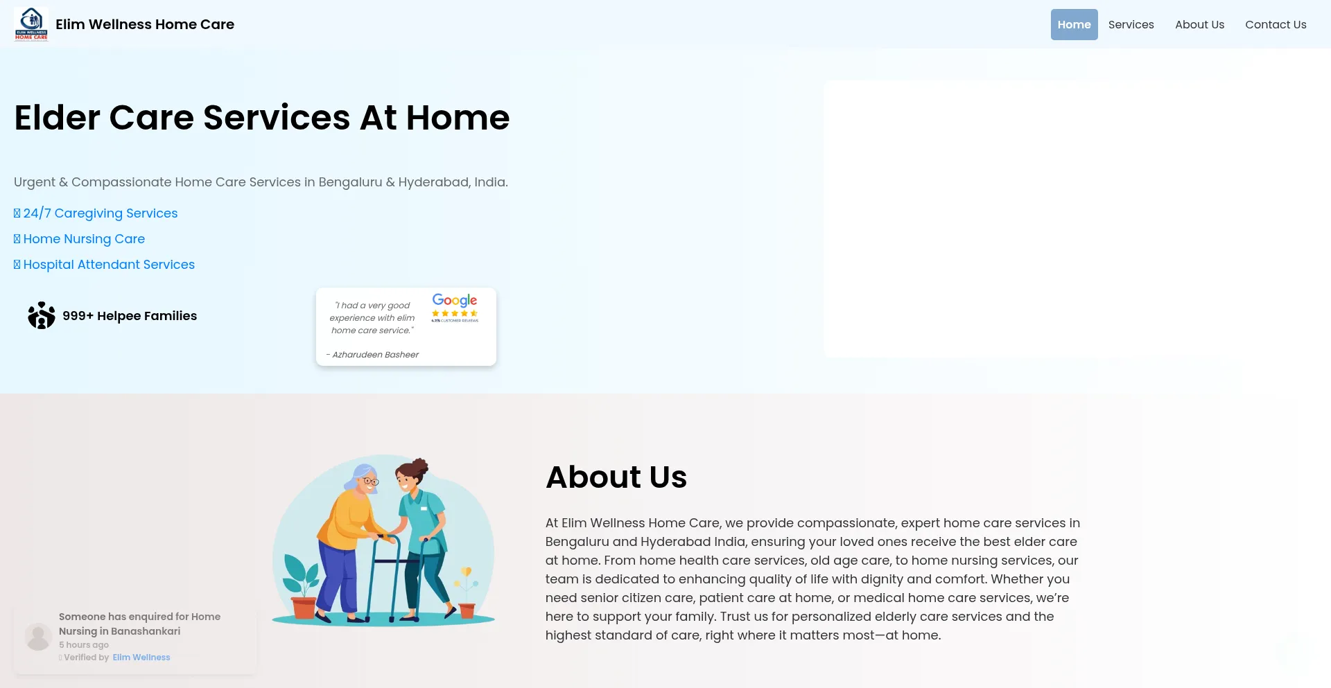 Elder Care Services in Bangalore | Elim Wellness - Home Nursing & Caregiving