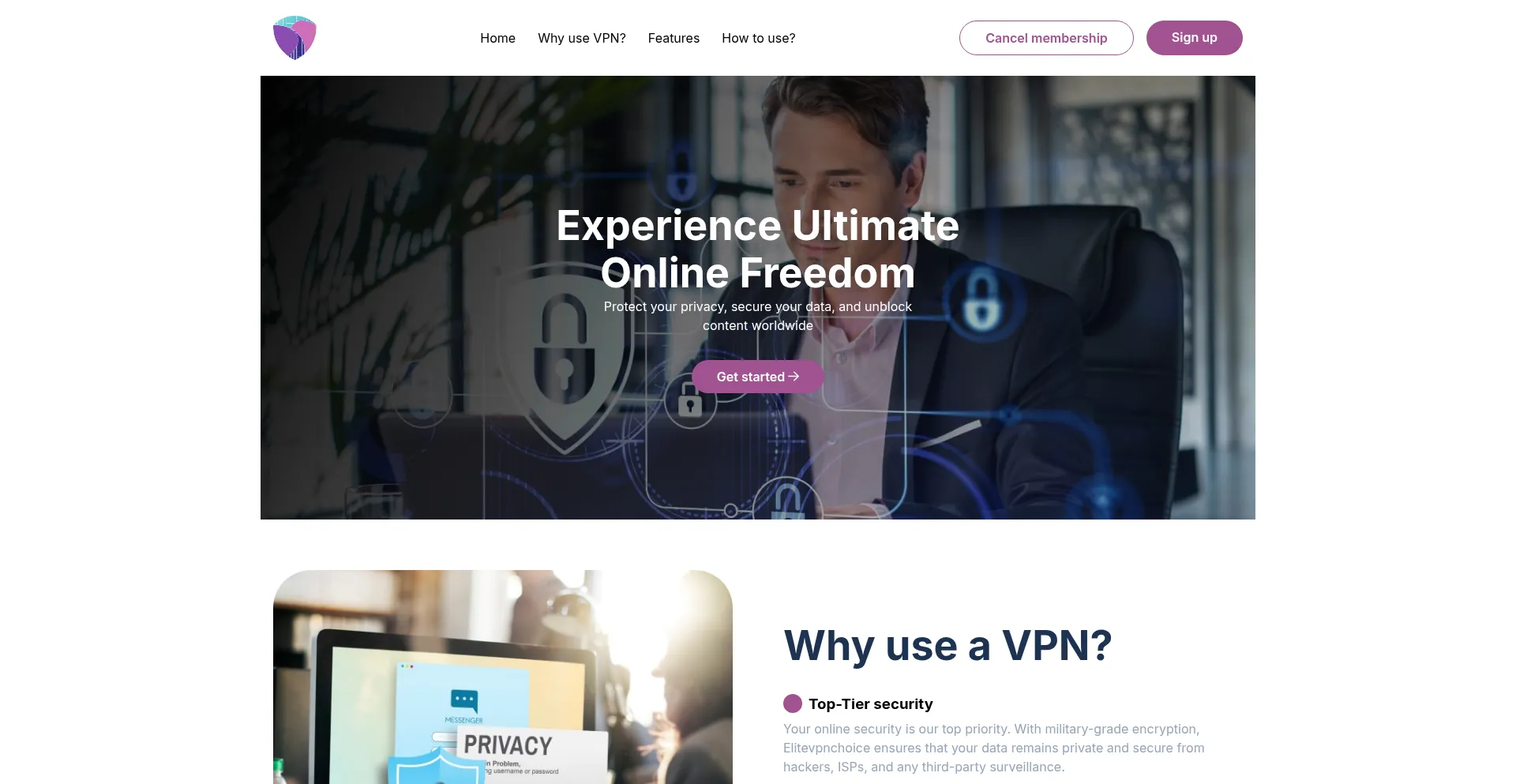 该网站实现数据收集表单,请求个人信息,包括姓名、电子邮件地址、电话号码或其他敏感详细信息。用户应验证 elitevpnchoice.com 的合法性并在提交个人数据前查看隐私政策。