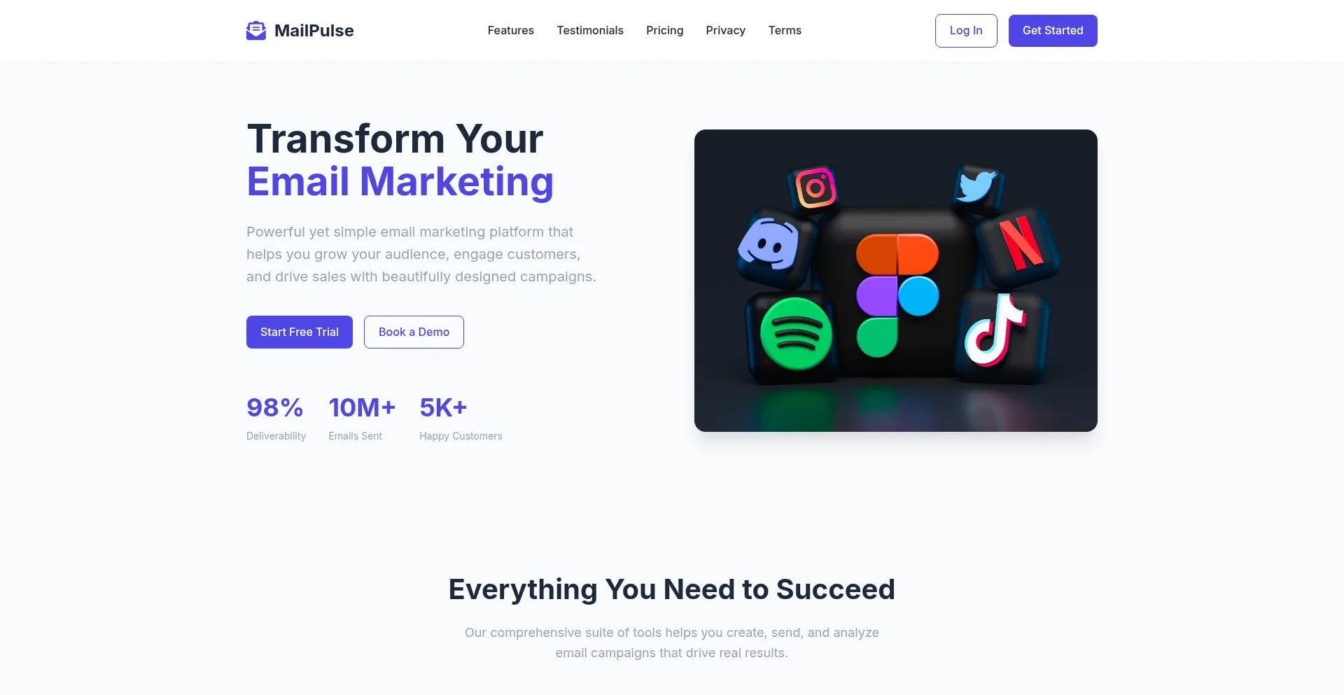 Powerful yet simple email marketing platform that helps you grow your audience, engage customers, and drive sales with beautifully designed campaigns.