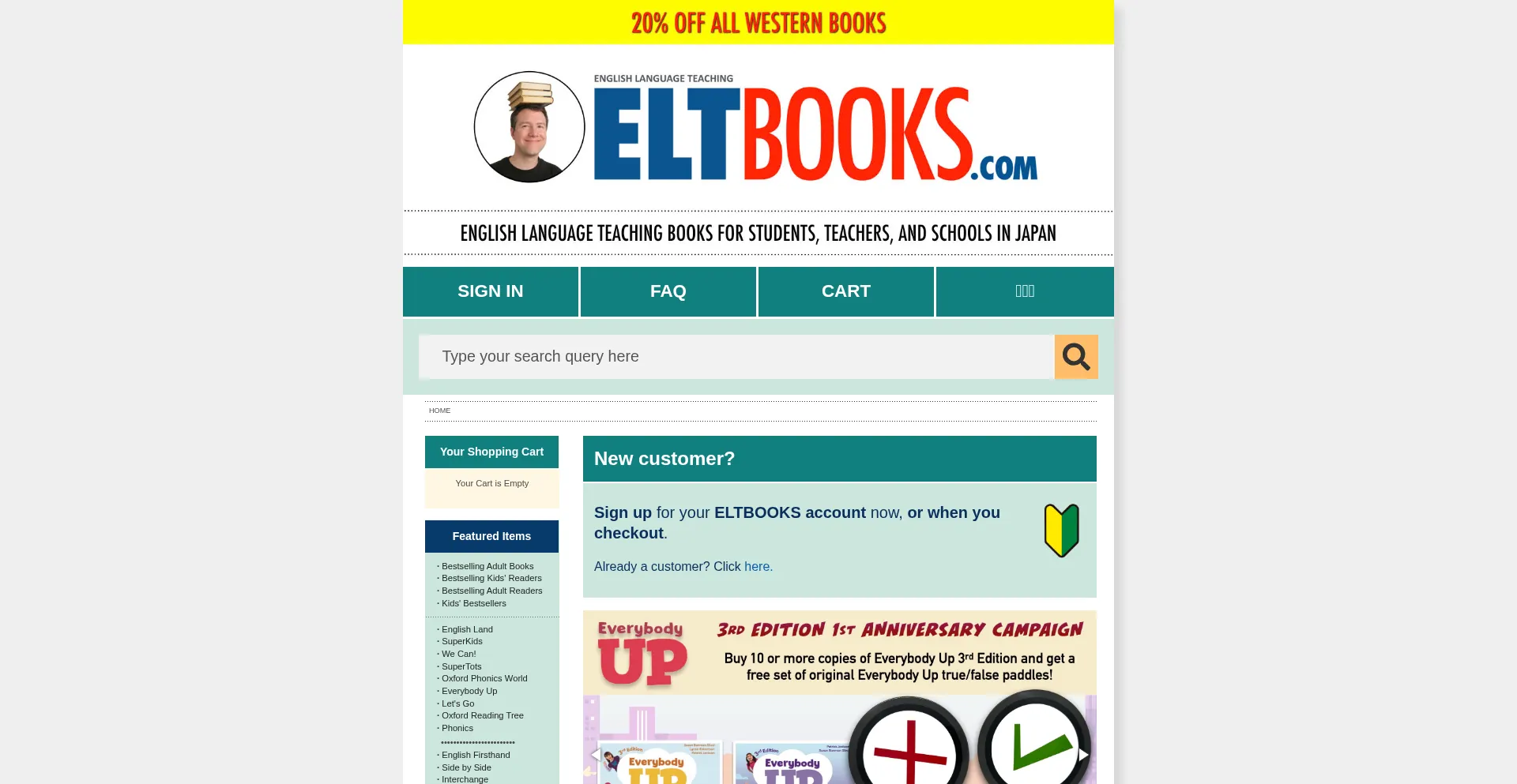 ELT Books offers English teaching books in Japan at 20% off for all Western books.