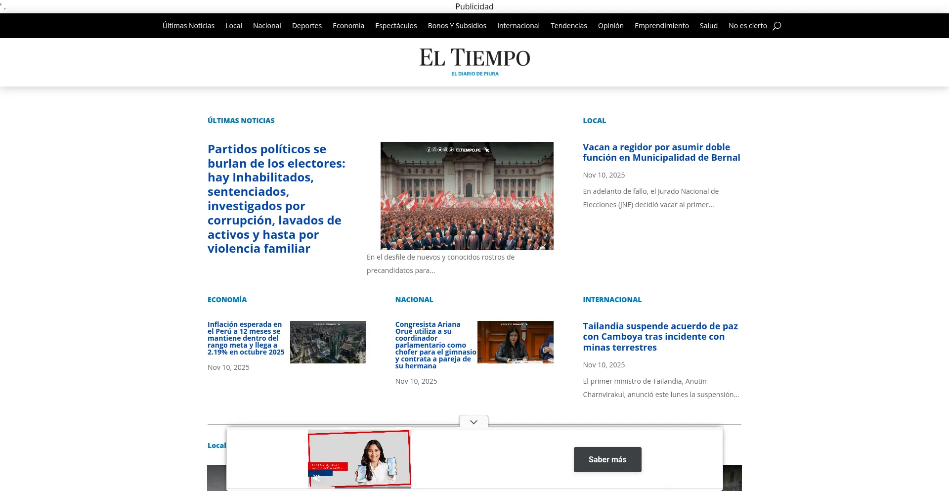 网站上存在社交媒体链接表明 eltiempo.pe 在社交媒体上维护官方账户,这是可信度和参与度的积极信号。