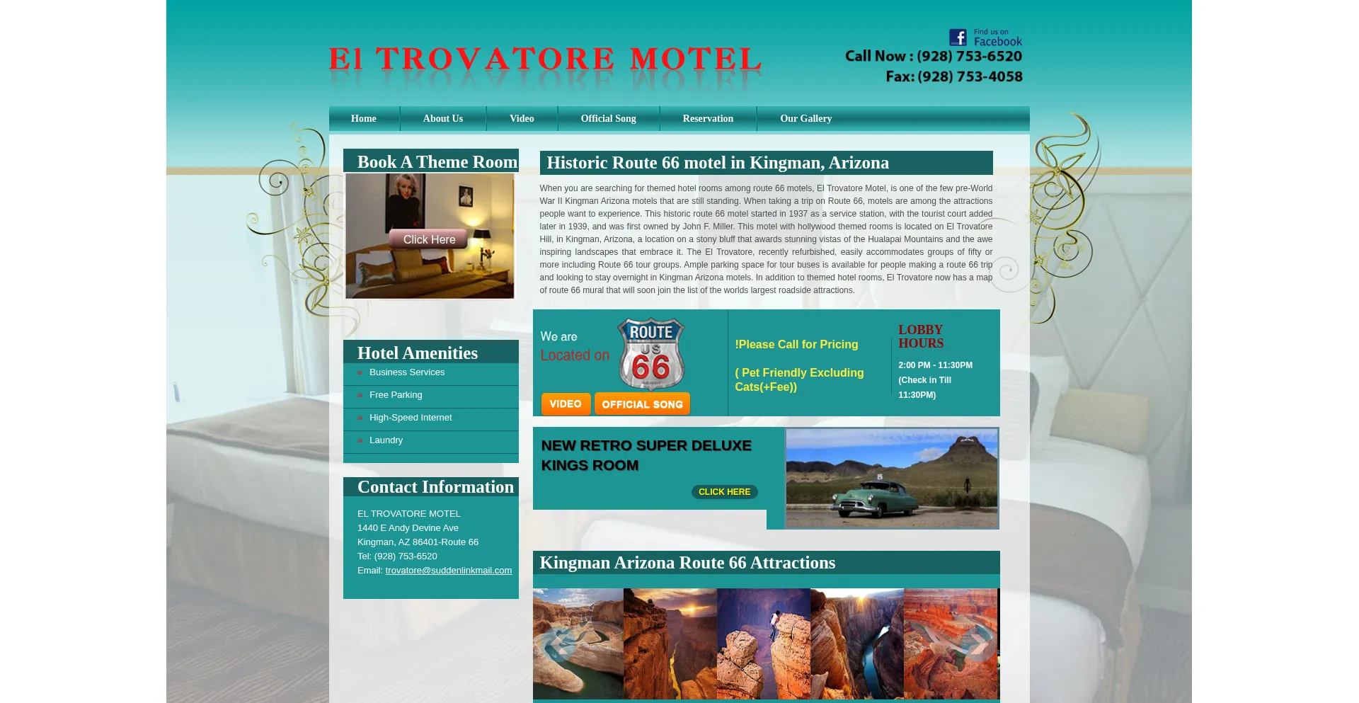Historic El Trovatore Motel is on Route 66 in Kingman, AZ. We feature Hollywood themed rooms, murals, World's longest 66 map, and 100 ft. neon tower.