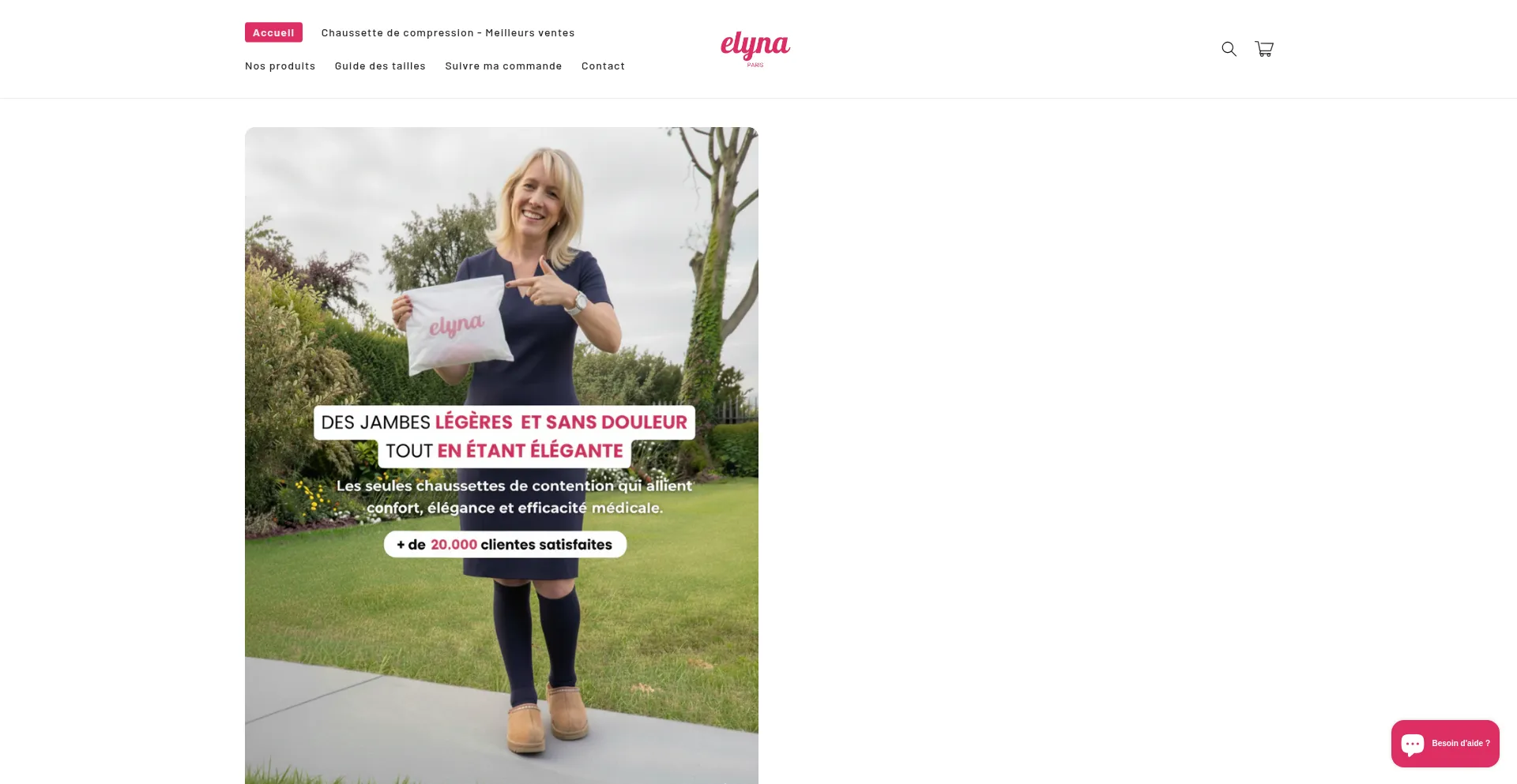 Chaussettes compression graduée Elyna Paris. Soulagez jambes lourdes et gonflements en 30 minutes. Technologie médicale française certifiée 15-20 mmHg