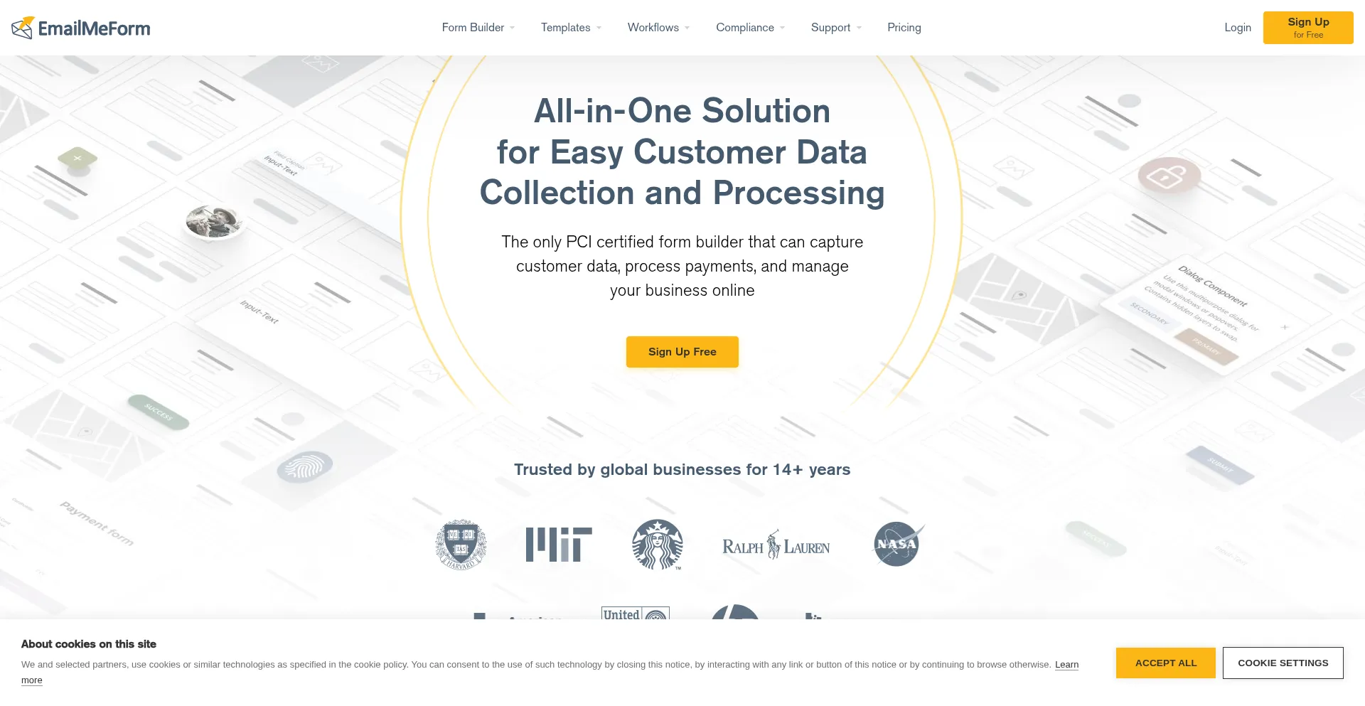 该网站实现符合GDPR或CCPA等隐私法规的cookie同意机制。这表明 emailmeform.com 遵守数据保护标准并为用户提供对个人数据收集实践的控制。