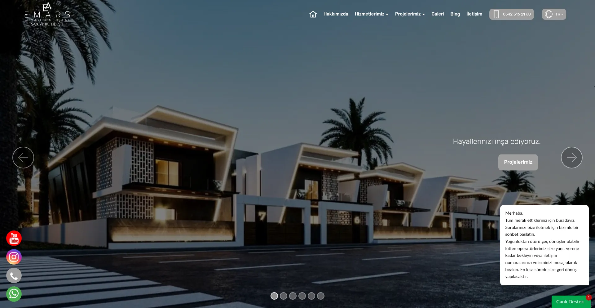 网站上存在社交媒体链接表明 emars-mimarlik.com 在社交媒体上维护官方账户,这是可信度和参与度的积极信号。