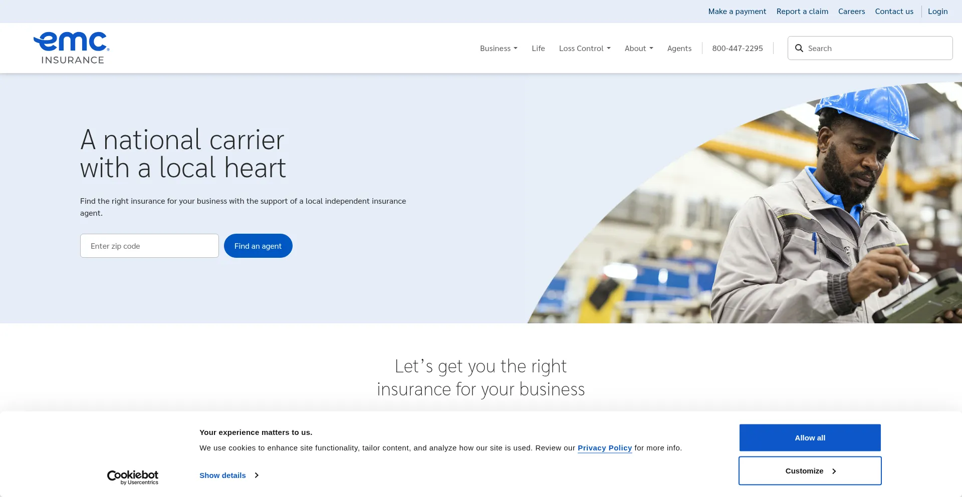 该网站实现符合GDPR或CCPA等隐私法规的cookie同意机制。这表明 emcinsurance.com 遵守数据保护标准并为用户提供对个人数据收集实践的控制。