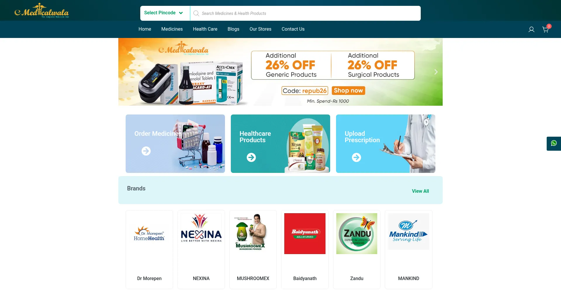 emedicalwala.com 使用 Bootstrap,这是一个广泛采用的开源响应式网页开发框架。Bootstrap 通过标准化组件和样式实现移动友好界面的高效创建。