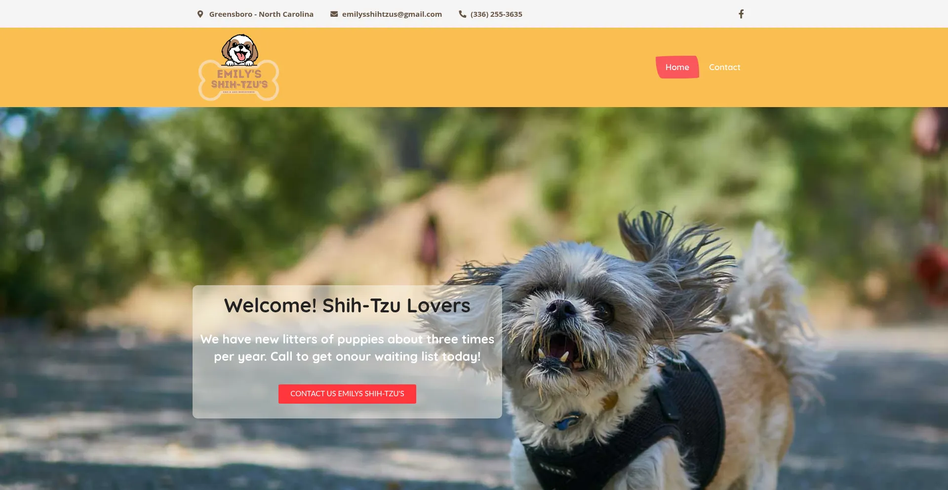 该网站实现数据收集表单,请求个人信息,包括姓名、电子邮件地址、电话号码或其他敏感详细信息。用户应验证 emilysshihtzus.com 的合法性并在提交个人数据前查看隐私政策。