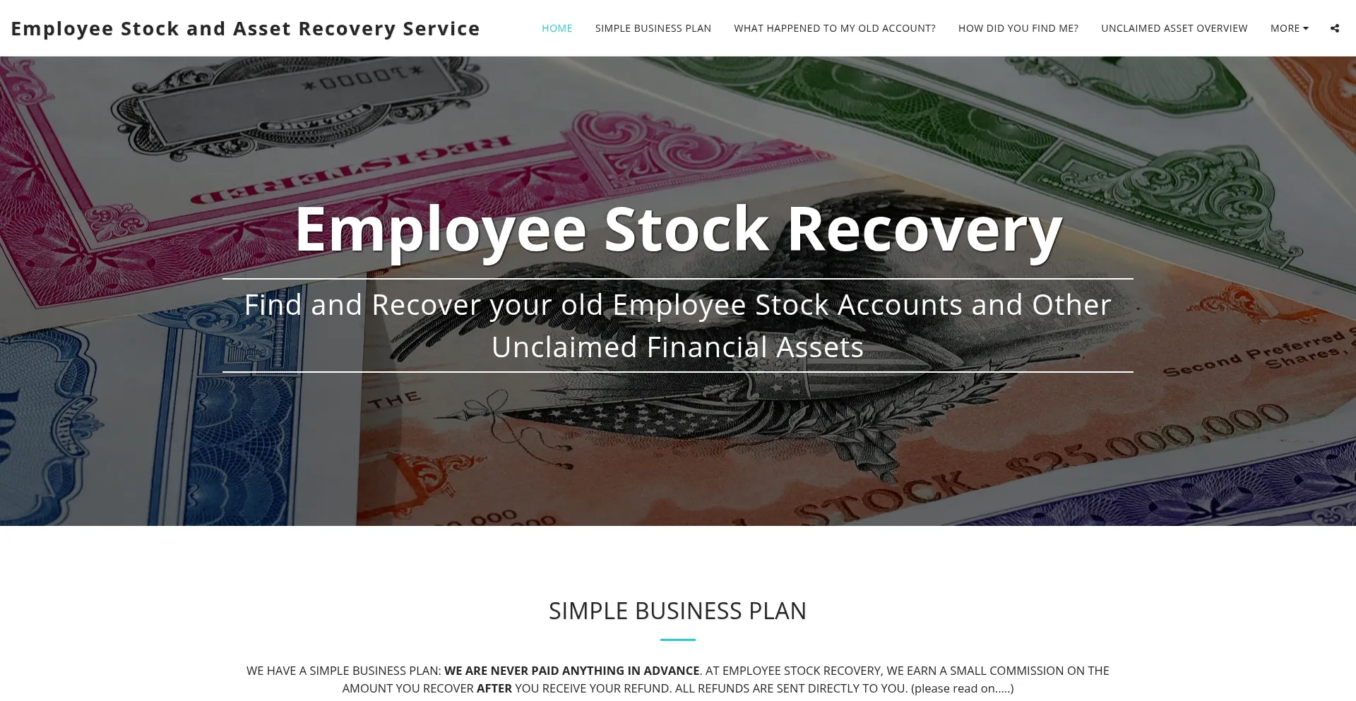 网站 employeestockrecovery.com 宣传针对丢失或被盗资产的资金恢复服务。虽然一些在应急费用结构上运营,其他可能需要预付款,这可能表明欺诈运营。在聘请此类服务前验证凭据和监管合规性。