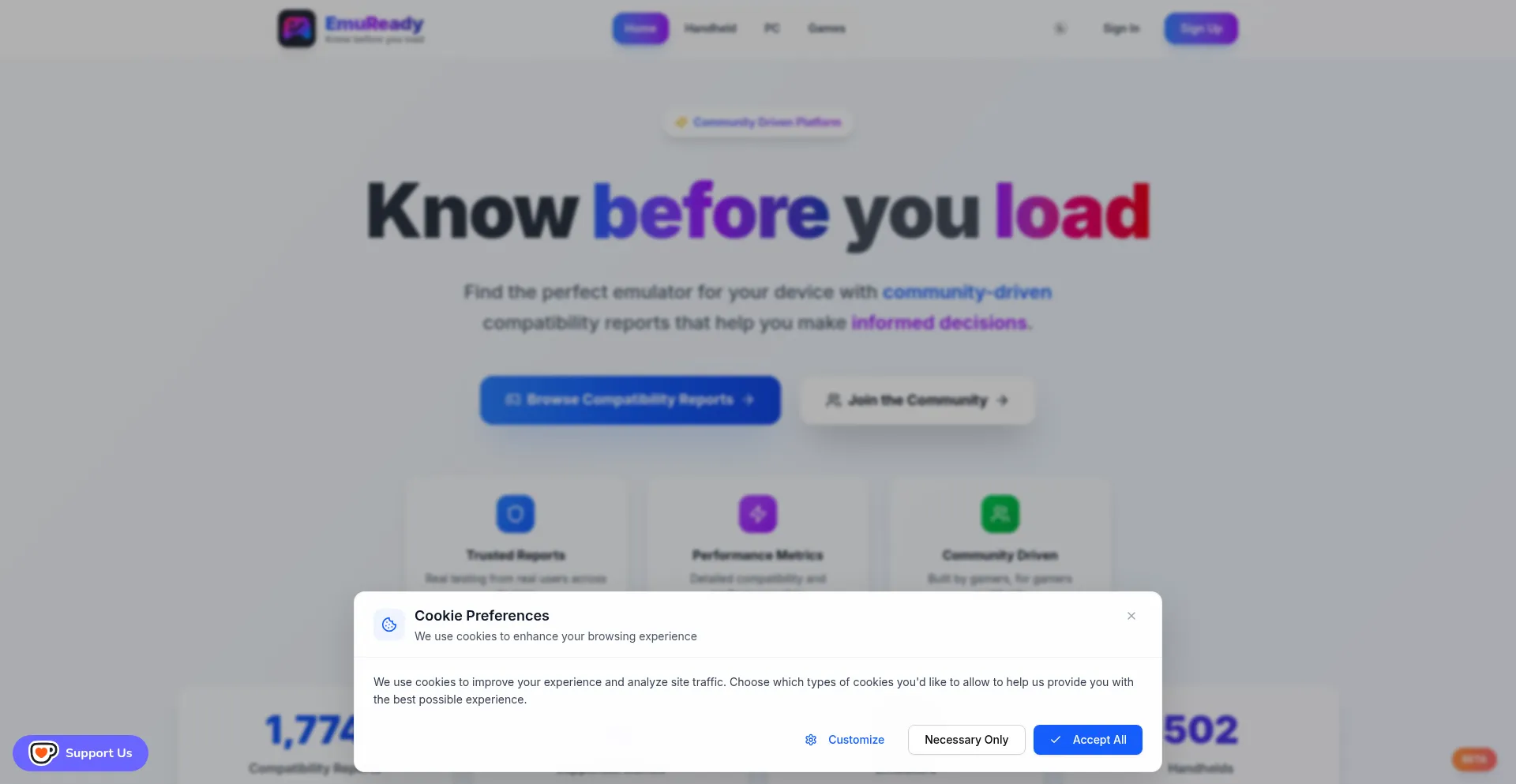 该网站实现符合GDPR或CCPA等隐私法规的cookie同意机制。这表明 emuready.com 遵守数据保护标准并为用户提供对个人数据收集实践的控制。