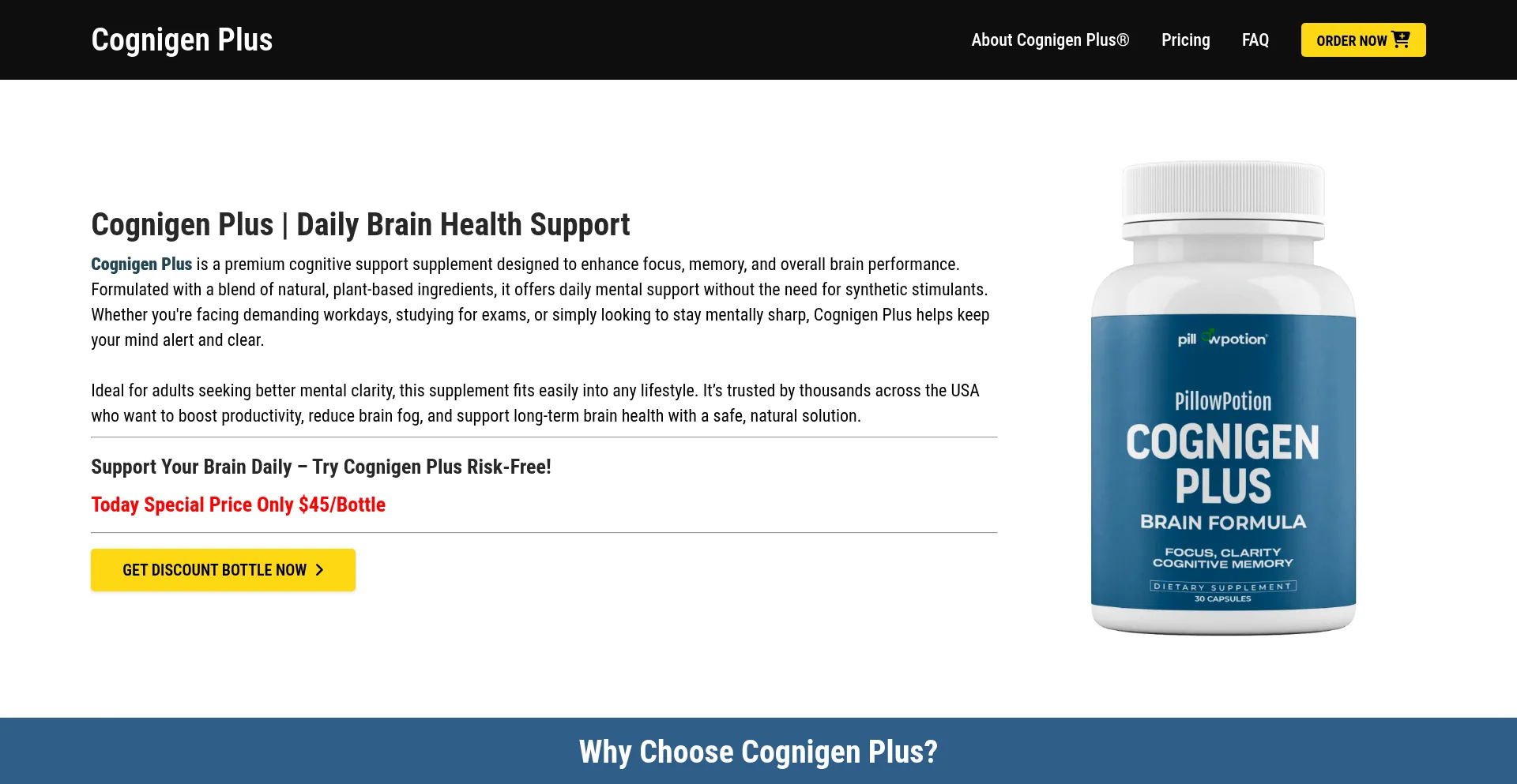 Cognigen Plus helps enhance focus, reduce brain fog, and support memory with a clean, plant-based formula made for daily mental performance.