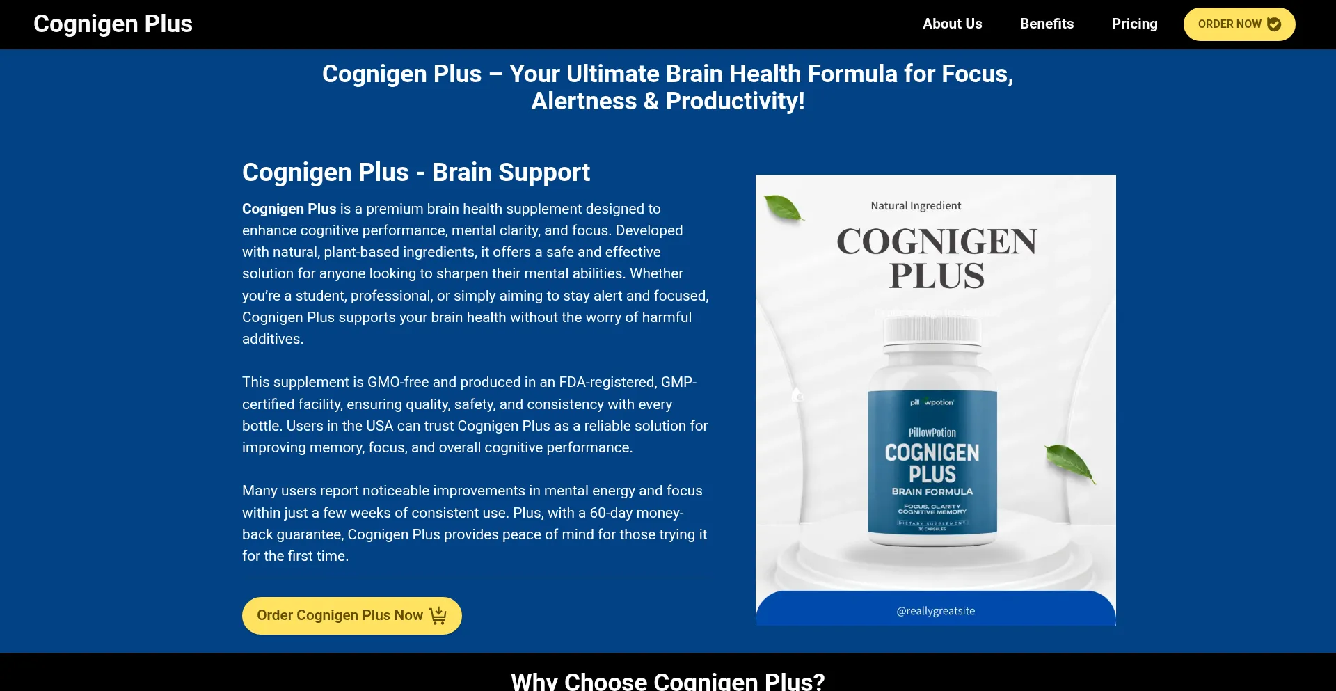 Cognigen Plus enhances brain health with natural ingredients. Experience sharper focus, better memory, and mental energy with 60-day risk-free USA guarantee.