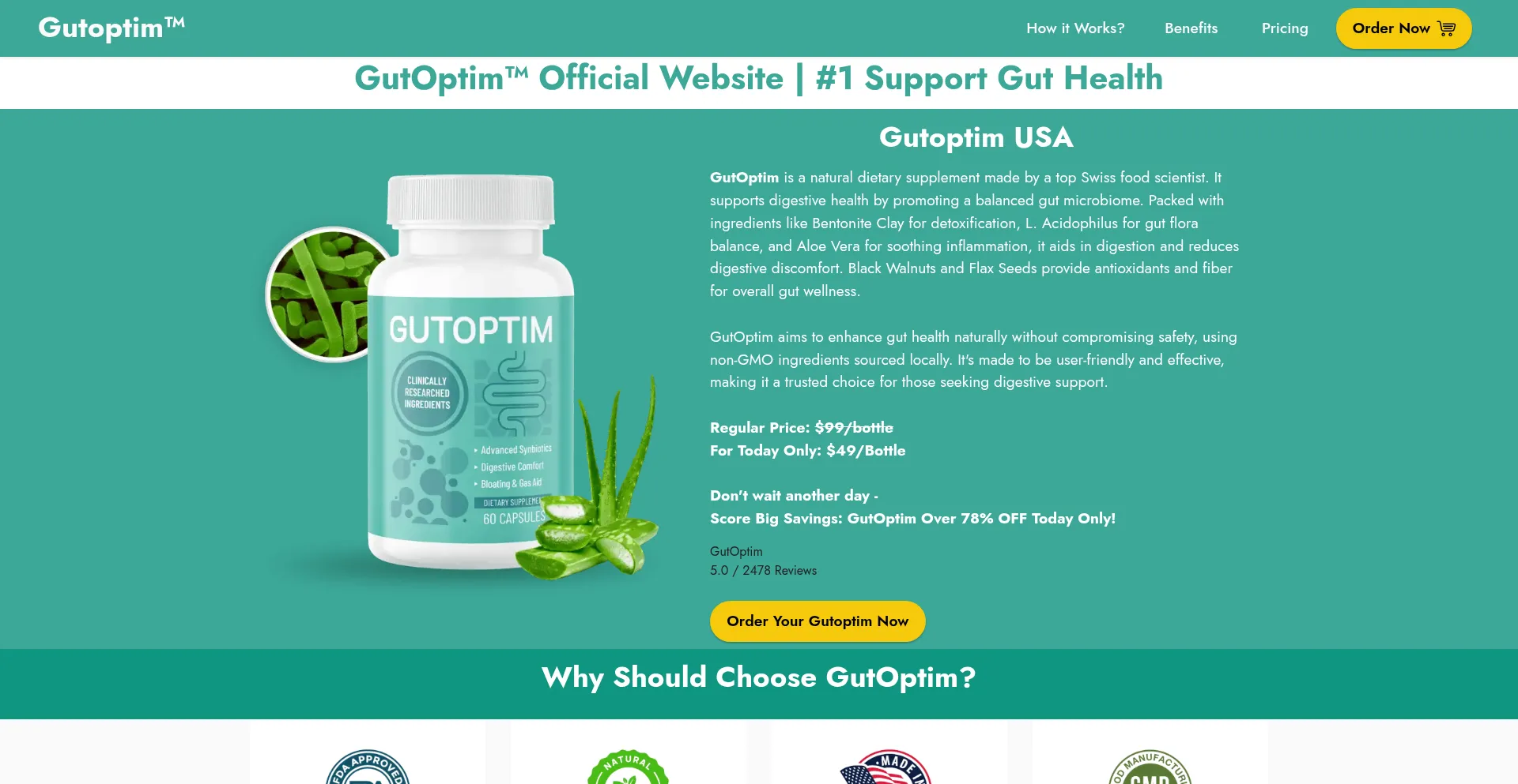 GutOptim promotes digestive health naturally with probiotics, fibers, and soothing ingredients, helping to improve gut comfort and balance.