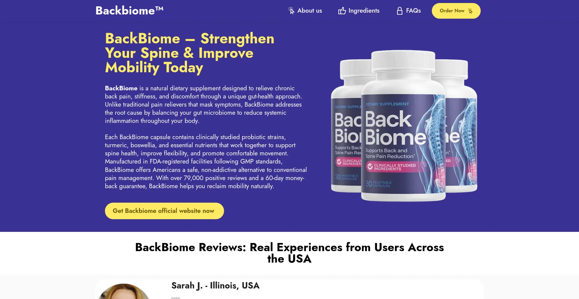 Discover BackBiome, a natural supplement for back pain relief, improved flexibility, and spinal health. Safe, effective, and made in the USA.