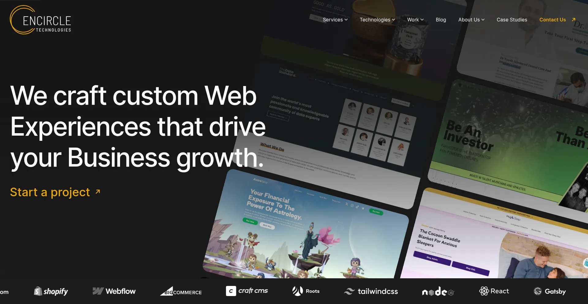 encircletechnologies.com 使用 Bootstrap,这是一个广泛采用的开源响应式网页开发框架。Bootstrap 通过标准化组件和样式实现移动友好界面的高效创建。