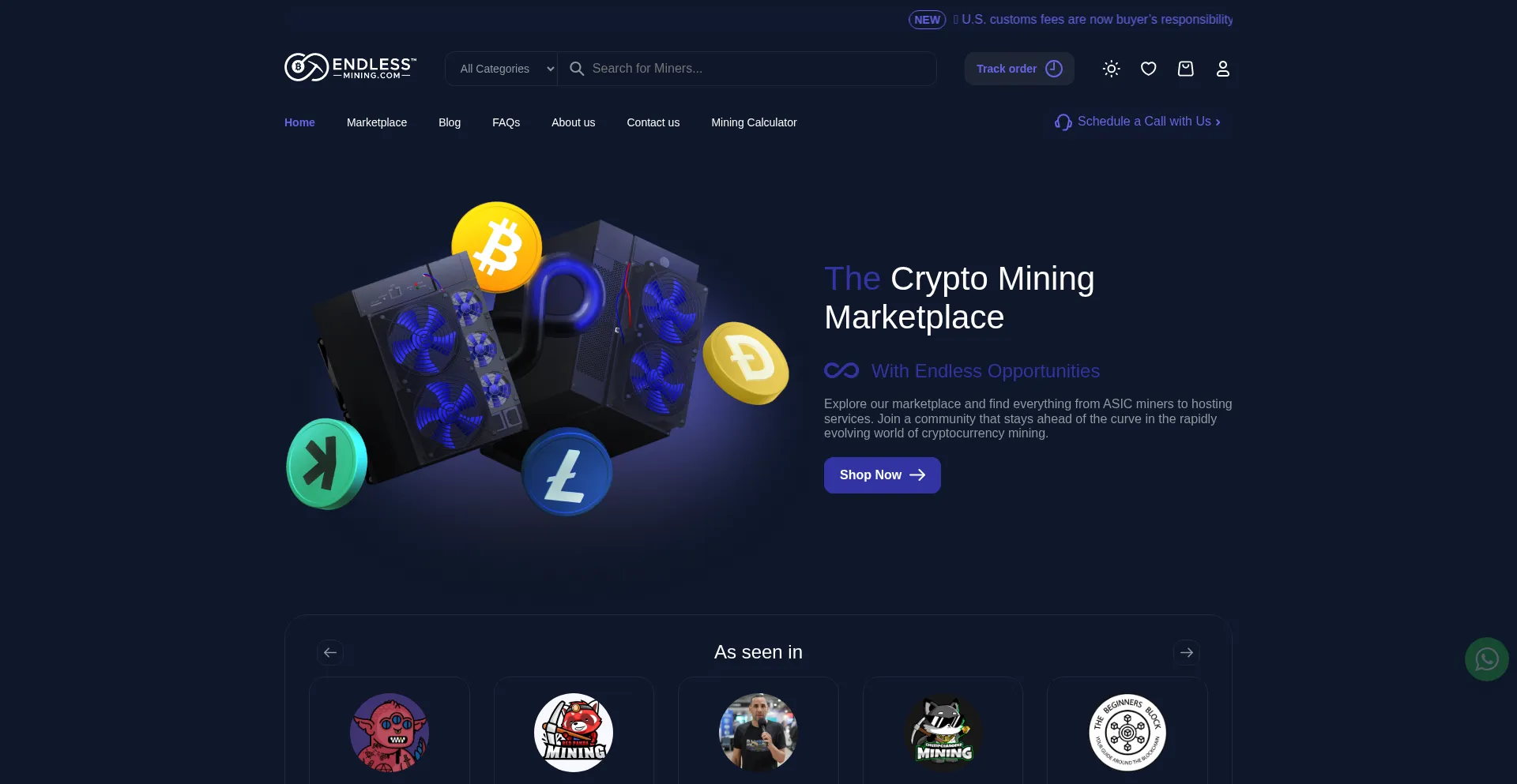Discover top-tier cryptocurrency mining and hosting solutions with Endless Mining. Explore our marketplace for the best in crypto mining equipment and hosting services. Start yo...