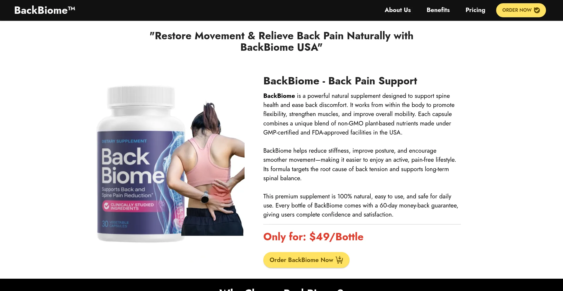 Discover how BackBiome supports spine health, eases back discomfort, and improves flexibility naturally. Try BackBiome in the USA with a 60-day guarantee!