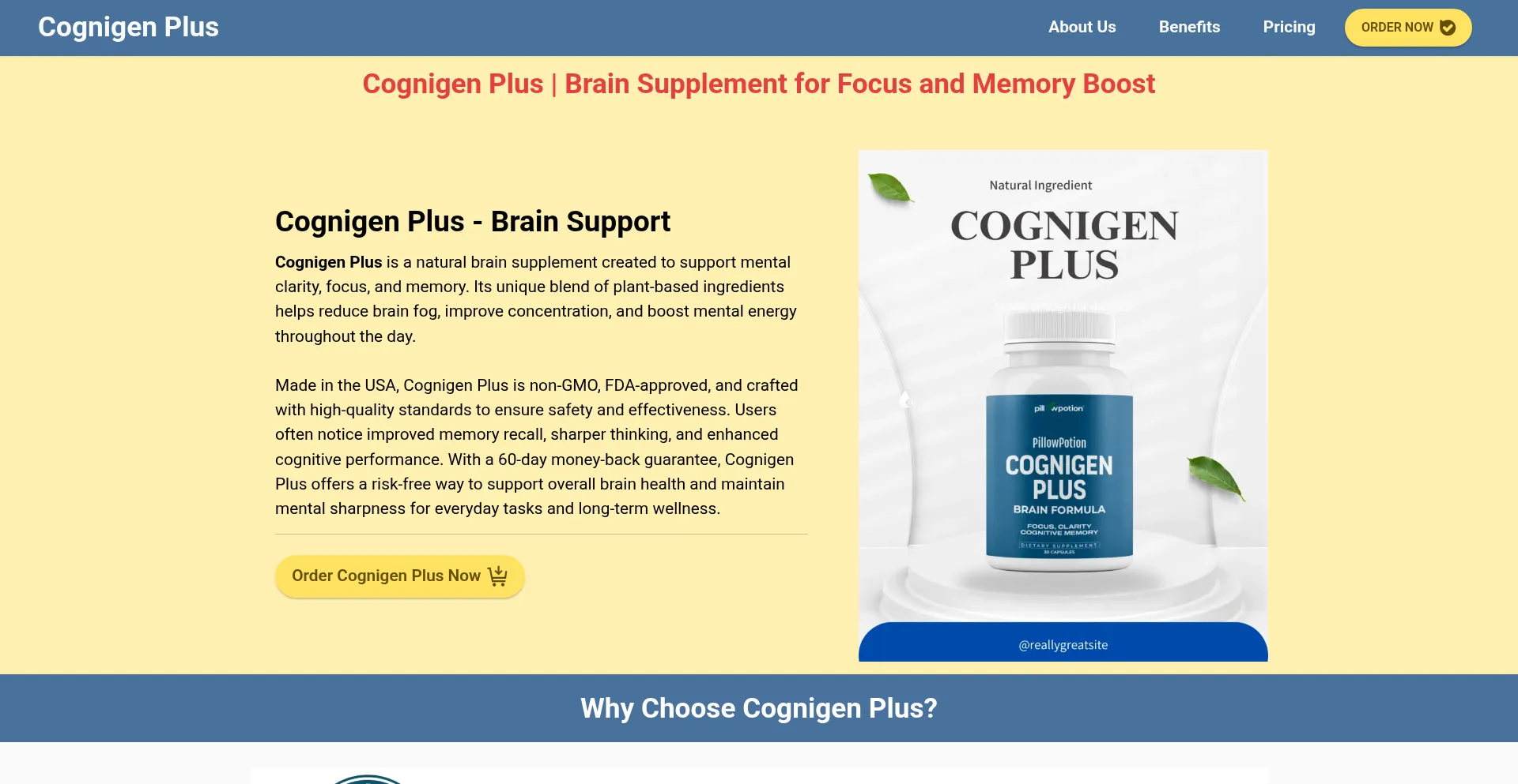Cognigen Plus is a natural brain supplement that support memory, focus, and mental clarity. Enjoy improved cognitive performance with safe, non-GMO ingredients.