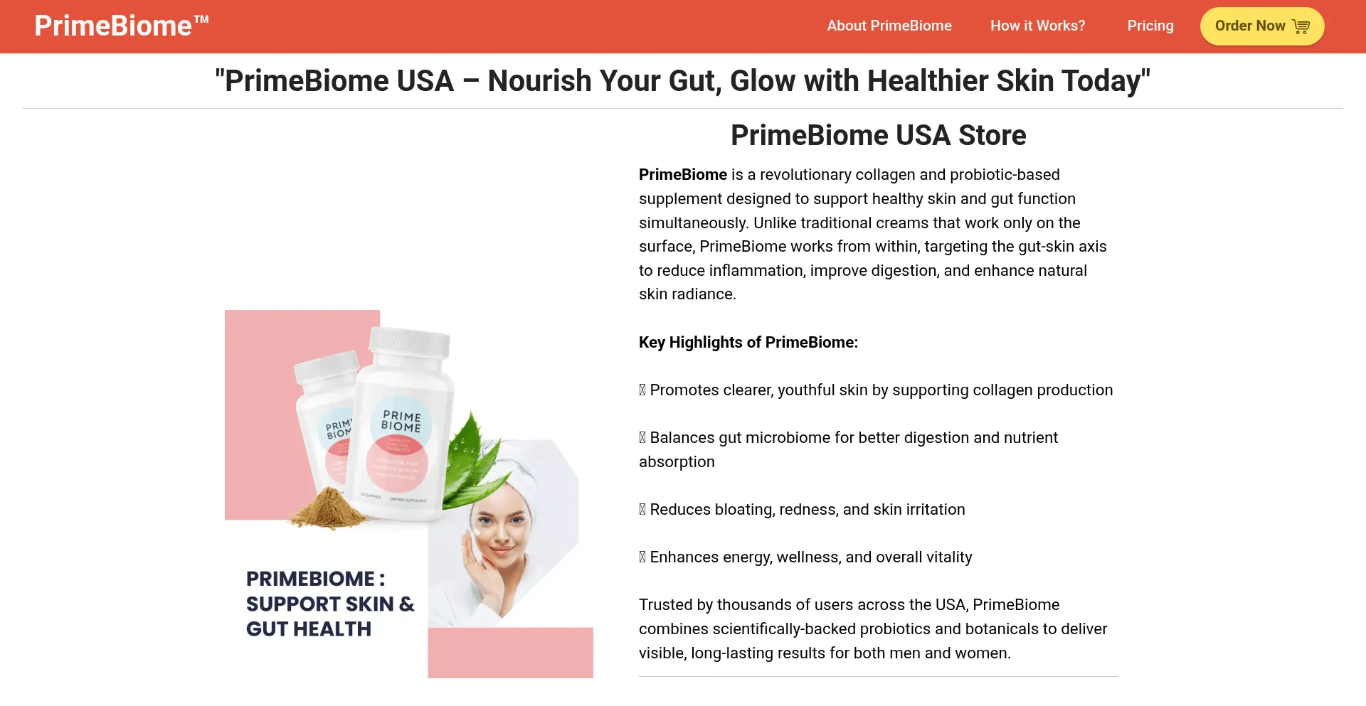Discover PrimeBiome, a gut-skin supplement in the USA that supports healthy digestion, boosts collagen, and enhances youthful, radiant skin naturally.