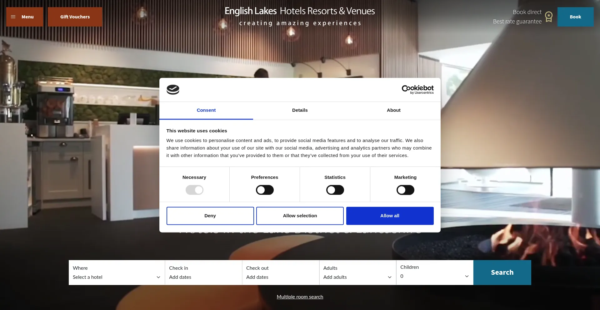 该网站实现符合GDPR或CCPA等隐私法规的cookie同意机制。这表明 englishlakes.co.uk 遵守数据保护标准并为用户提供对个人数据收集实践的控制。