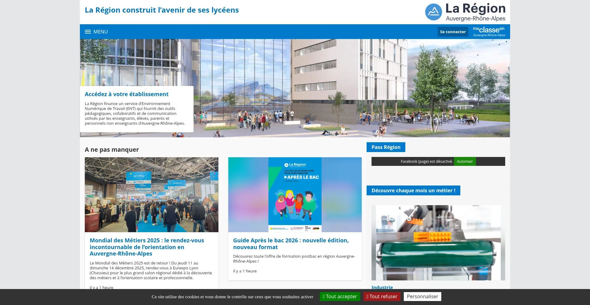 网站上存在社交媒体链接表明 ent.auvergnerhonealpes.fr 在社交媒体上维护官方账户,这是可信度和参与度的积极信号。