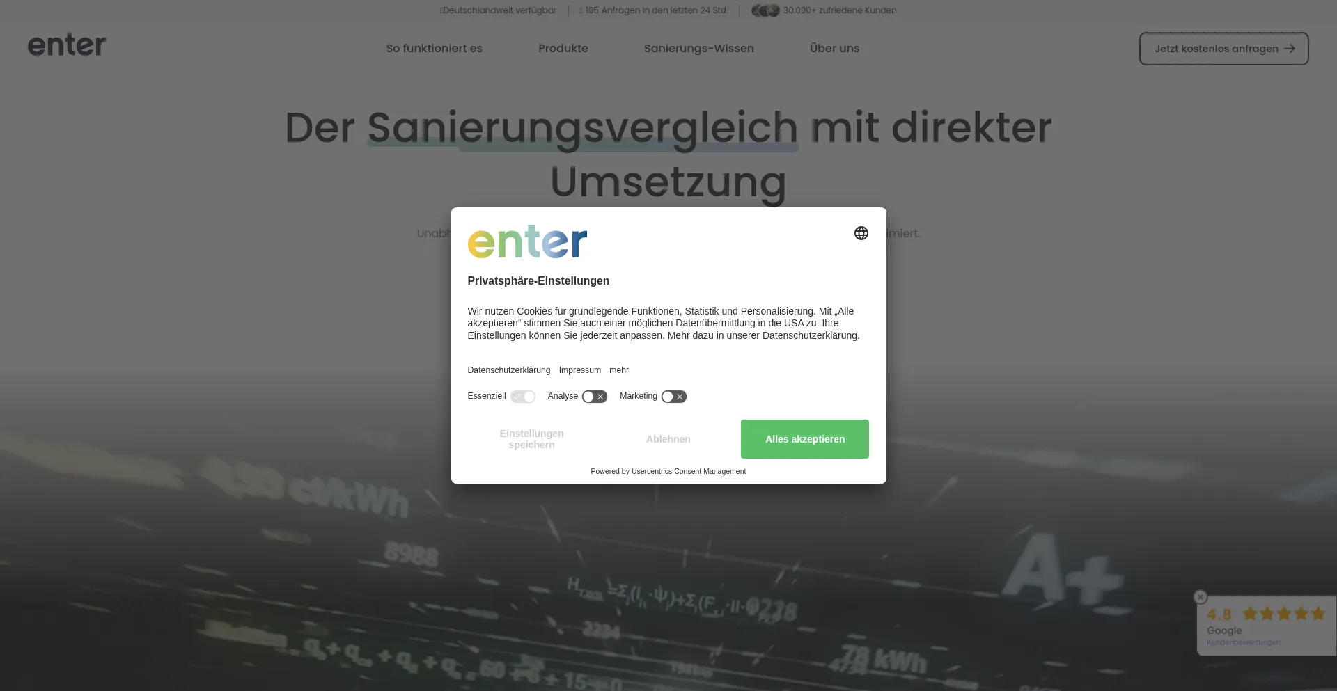 Enter ist die Plattform für energetische Sanierung: Mit einem kostenlosen Vor-Ort-Termin analysieren unabhängige Experten Ihr Haus und liefern schnell vergleichbare Angebote �...