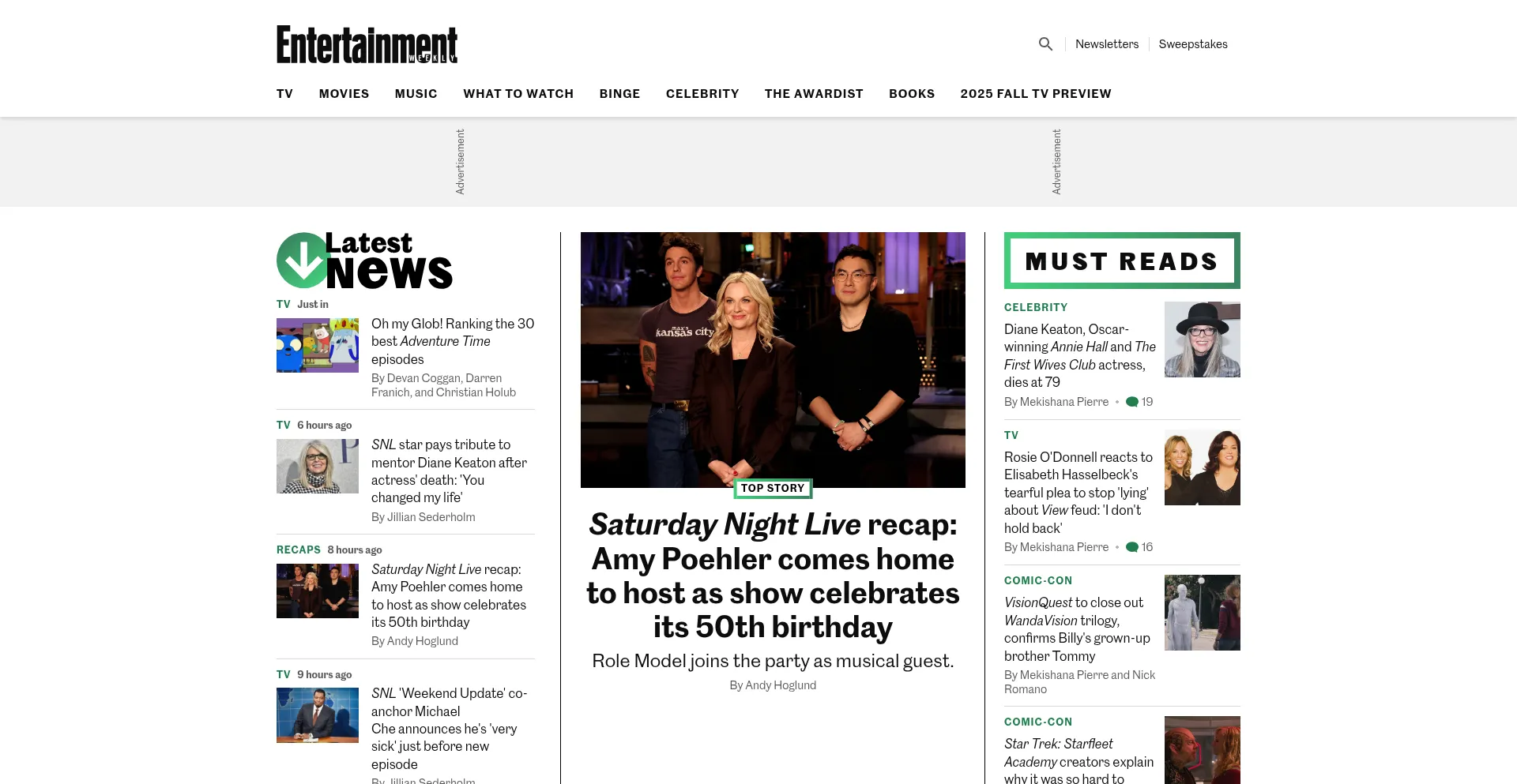 Get your daily dose of the latest TV, movie, music, and book news from Entertainment Weekly, your go-to source for all things entertainment.