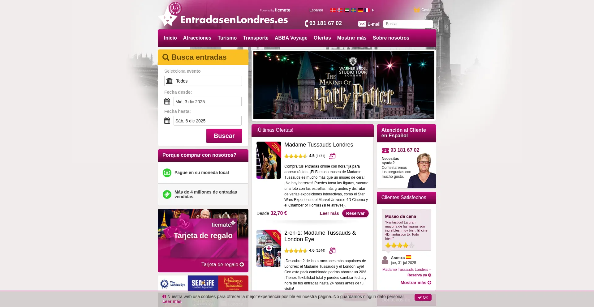 Entradas para atracciones turísticas y billetes de transporte de Londres en EntradasenLondres.es
