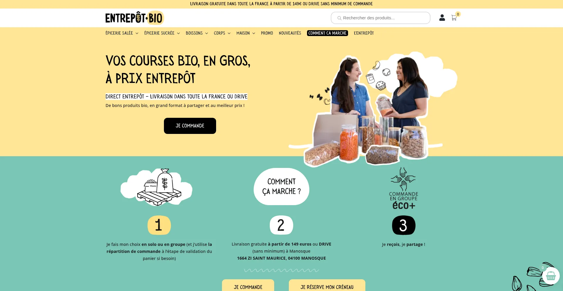 Vos Courses Bio en ligne à prix Entrepôt - Courses Bio en vrac - Épicerie Salée - Épicerie Sucrée - Maison et Soin du corps