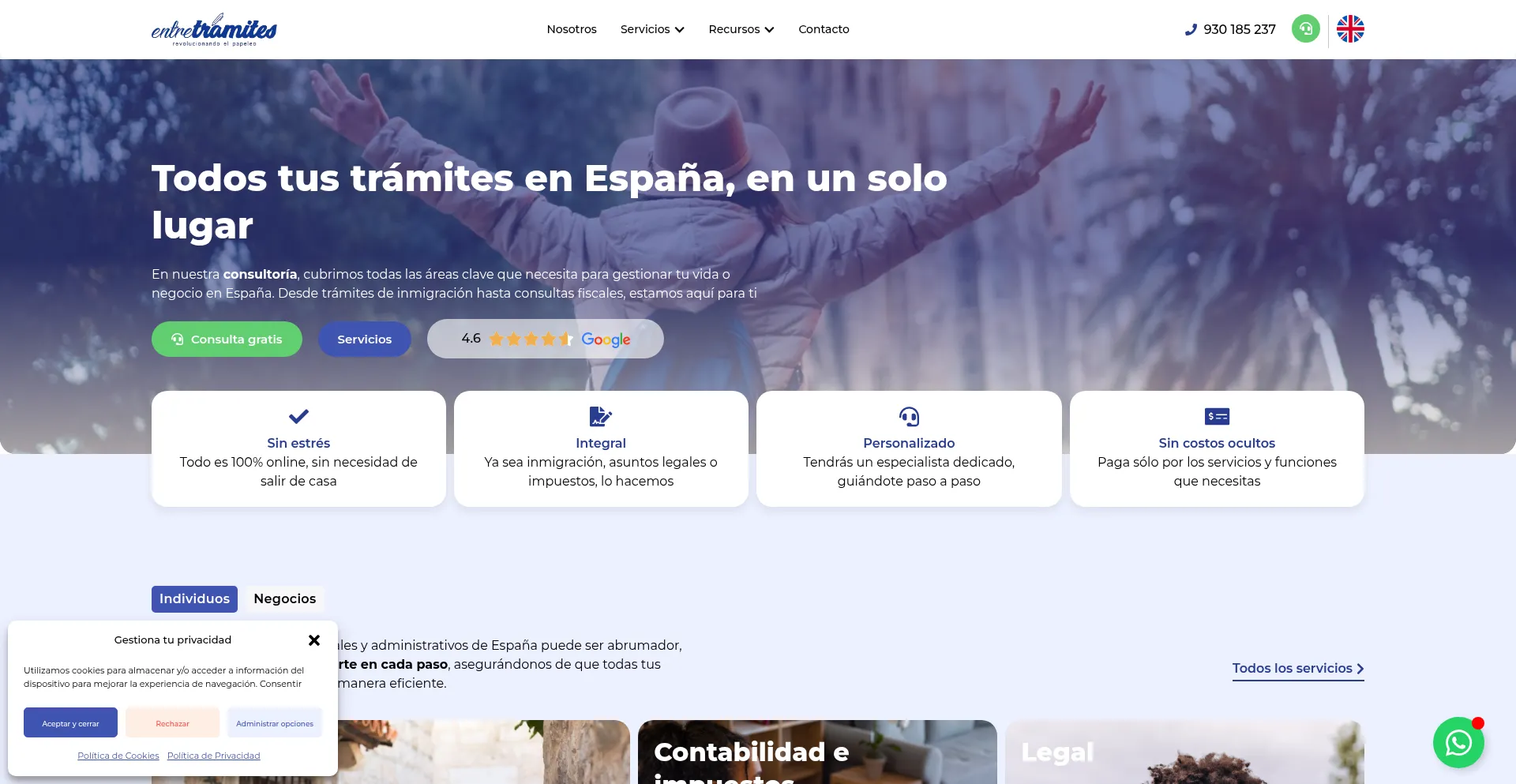 entretramites.com 使用 Google Tag Manager 在其网站上添加和更新追踪代码(标签)。