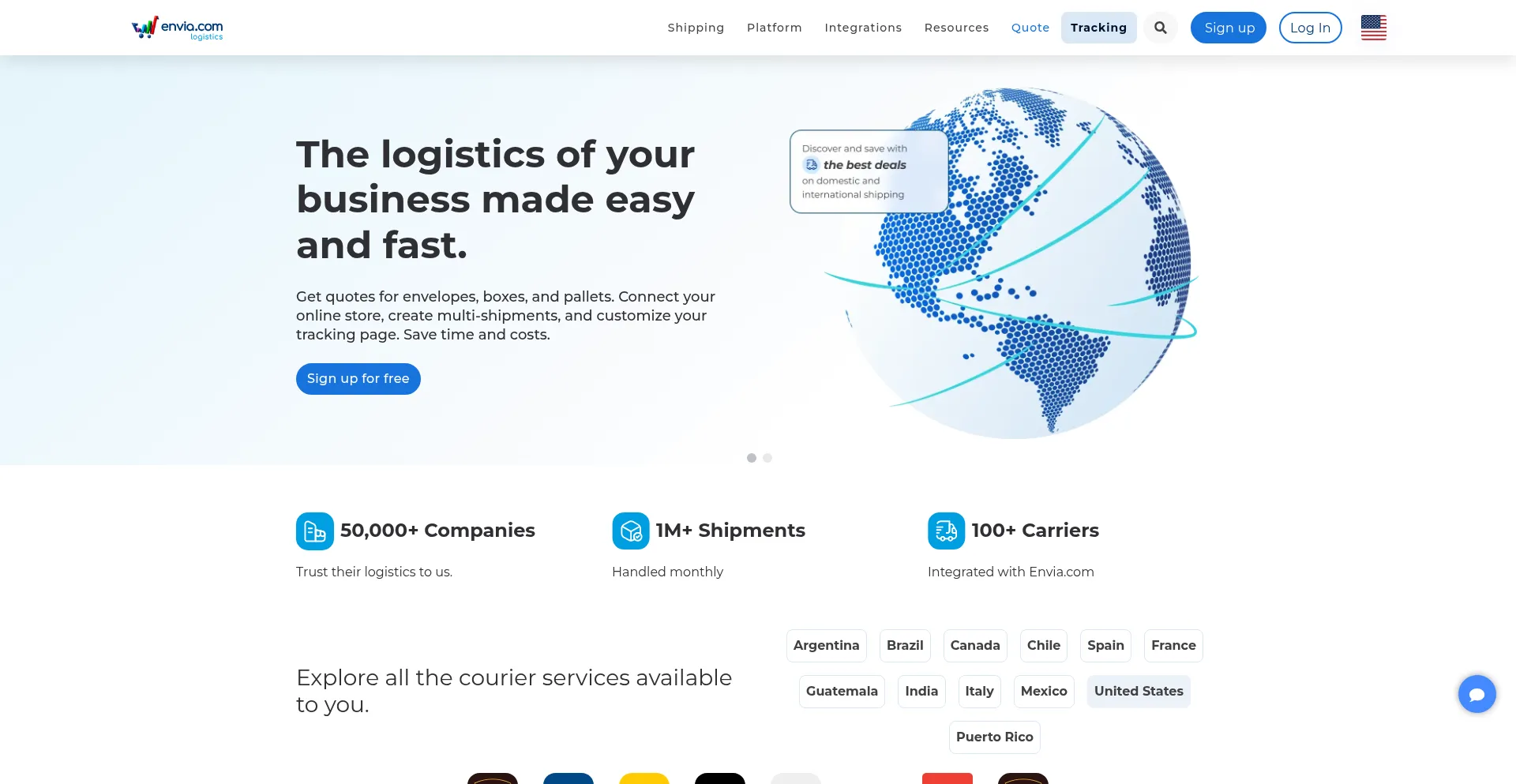 Logistics platform for your business. Make domestic and international shipments with preferential rates in courier, parcel, and consolidated freight.