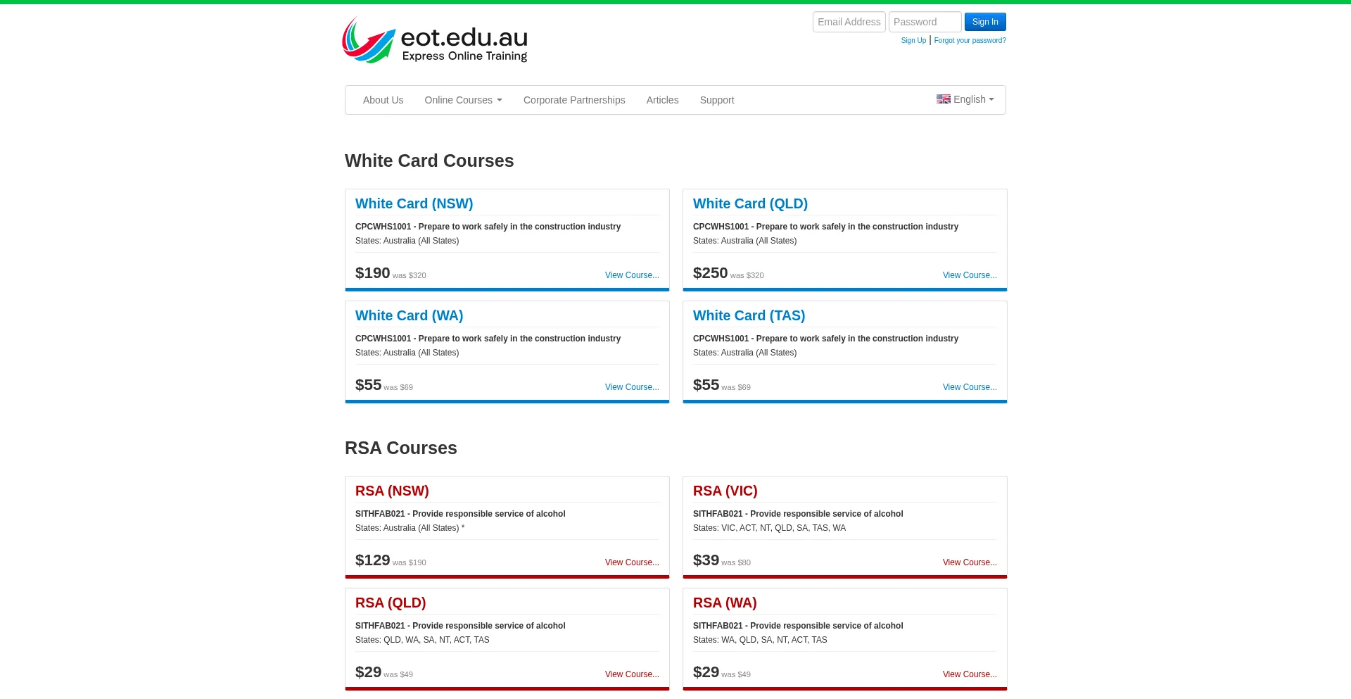 RSA / White Card / RSG official courses. Fully Accredited, 24/7, After Hours Support, Pay Later with Afterpay, Lowest Price Guarantee.