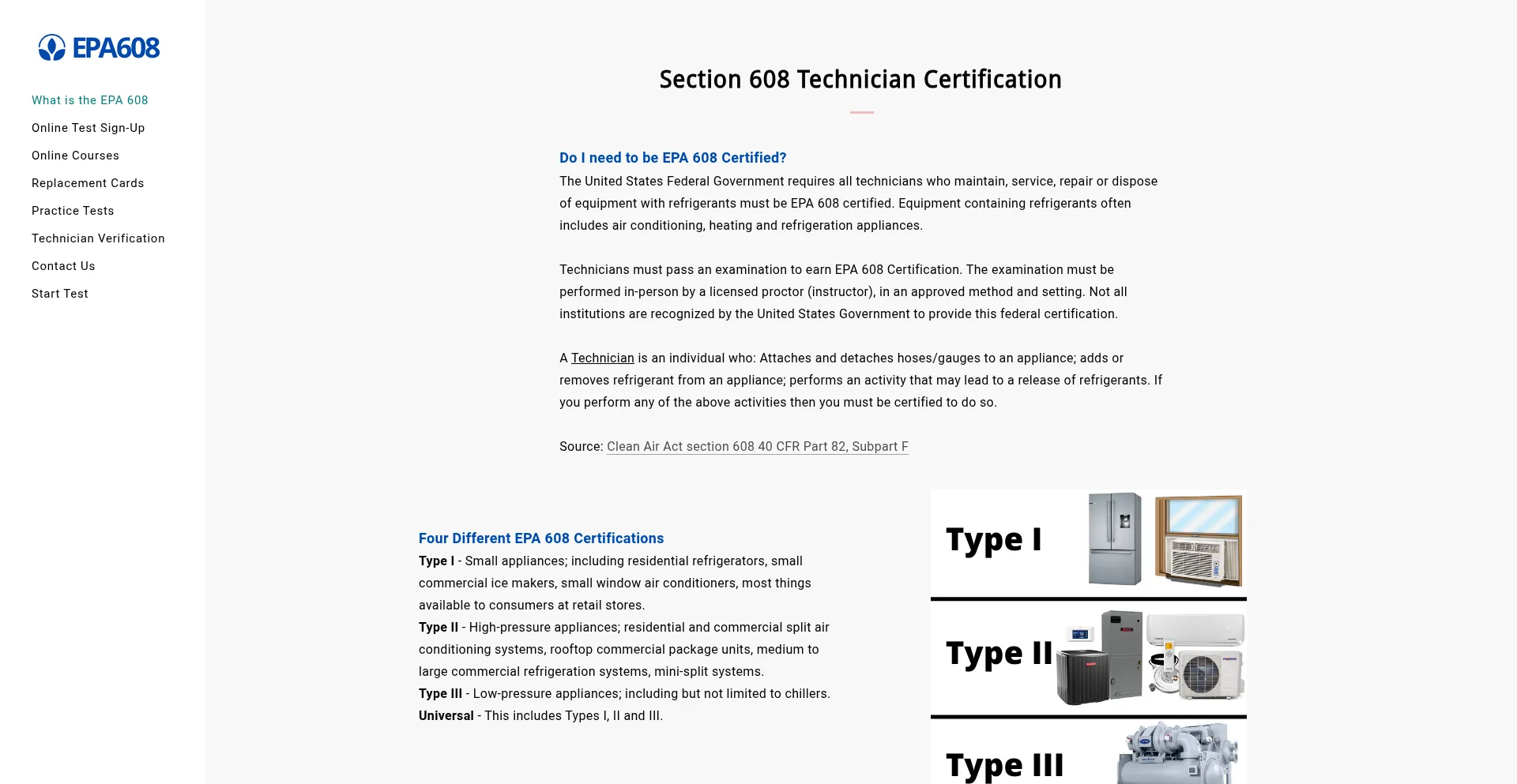 EPA Section 608 Technician Certification | Type I, II, III & Universal Cert