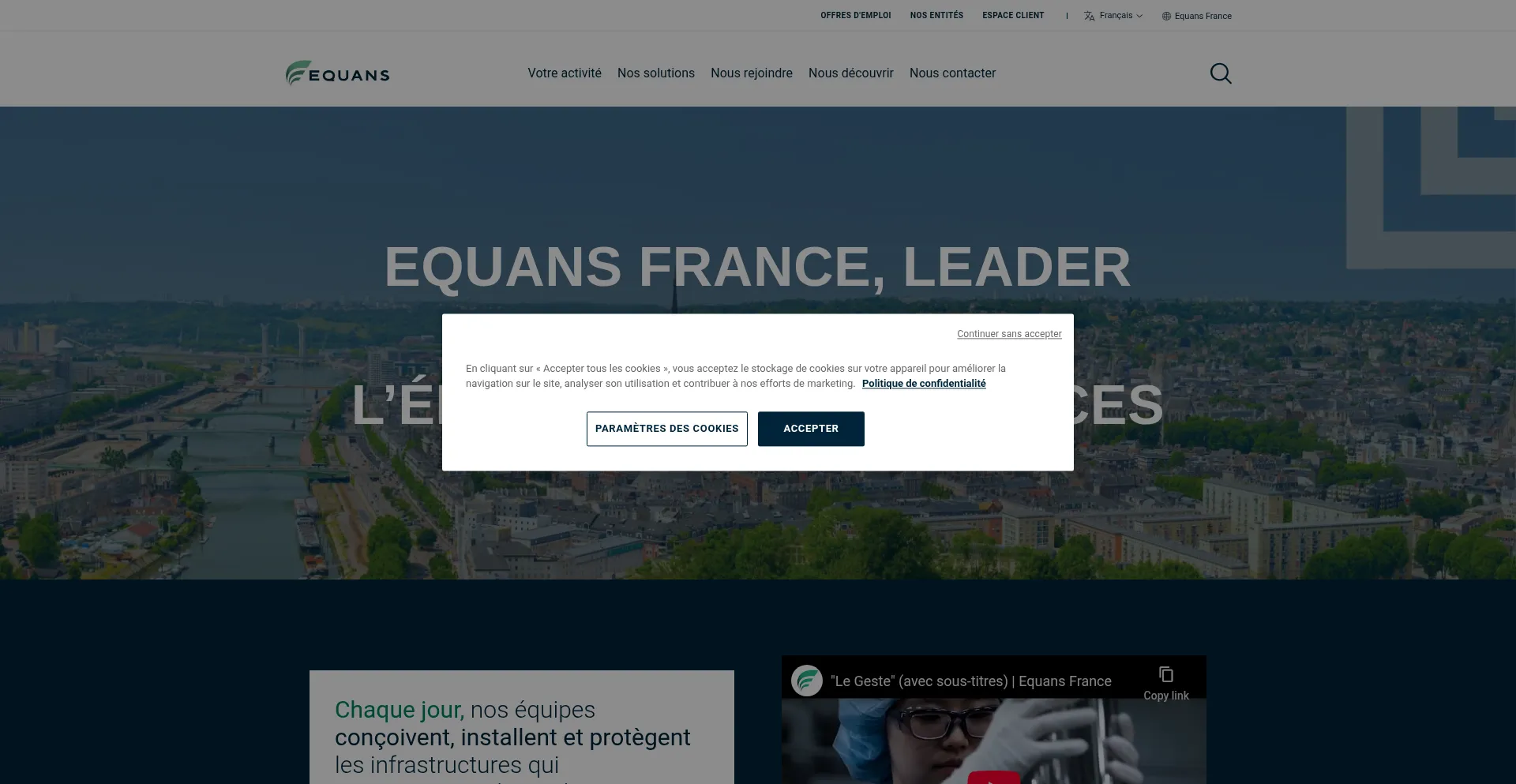 该网站实现符合GDPR或CCPA等隐私法规的cookie同意机制。这表明 equans.fr 遵守数据保护标准并为用户提供对个人数据收集实践的控制。