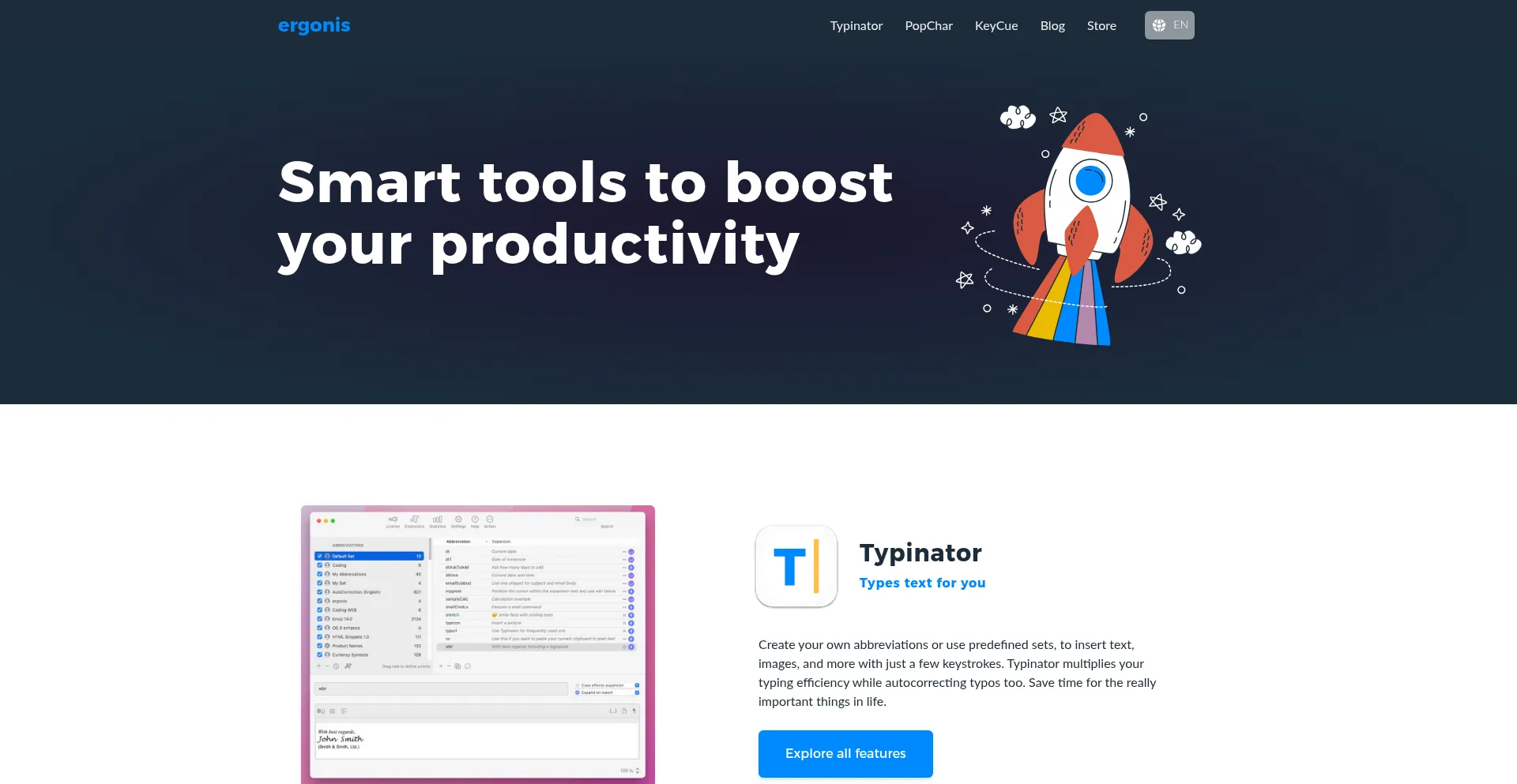 Boost your productivity now with Typinator, PopChar and Keycue.