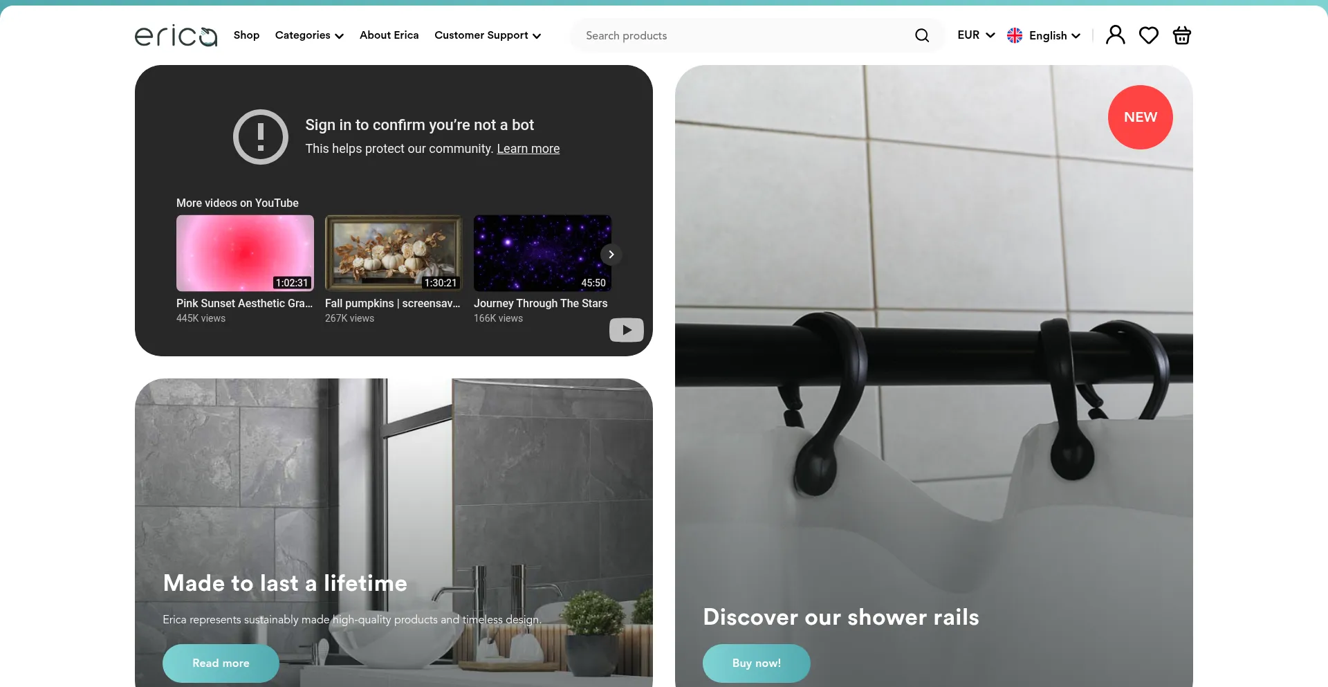 该网站实现符合GDPR或CCPA等隐私法规的cookie同意机制。这表明 ericashop.eu 遵守数据保护标准并为用户提供对个人数据收集实践的控制。