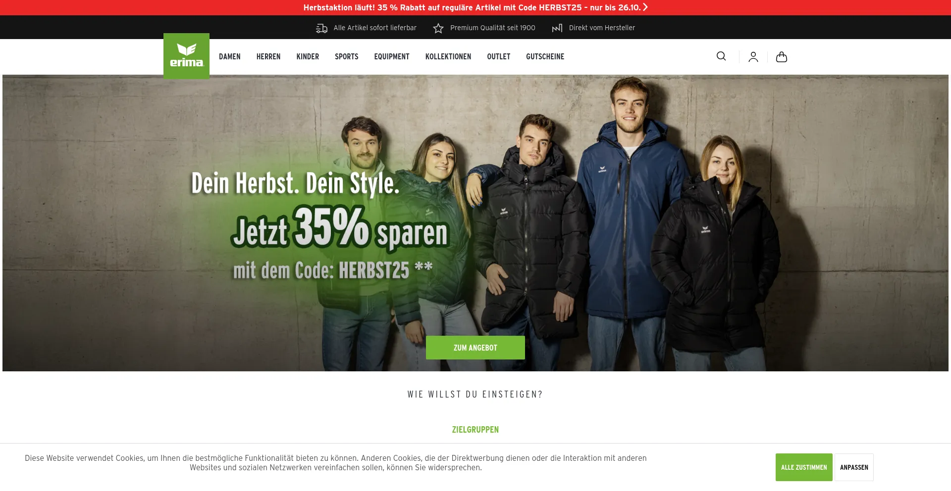 erima.shop 使用 Google Tag Manager 在其网站上添加和更新追踪代码(标签)。