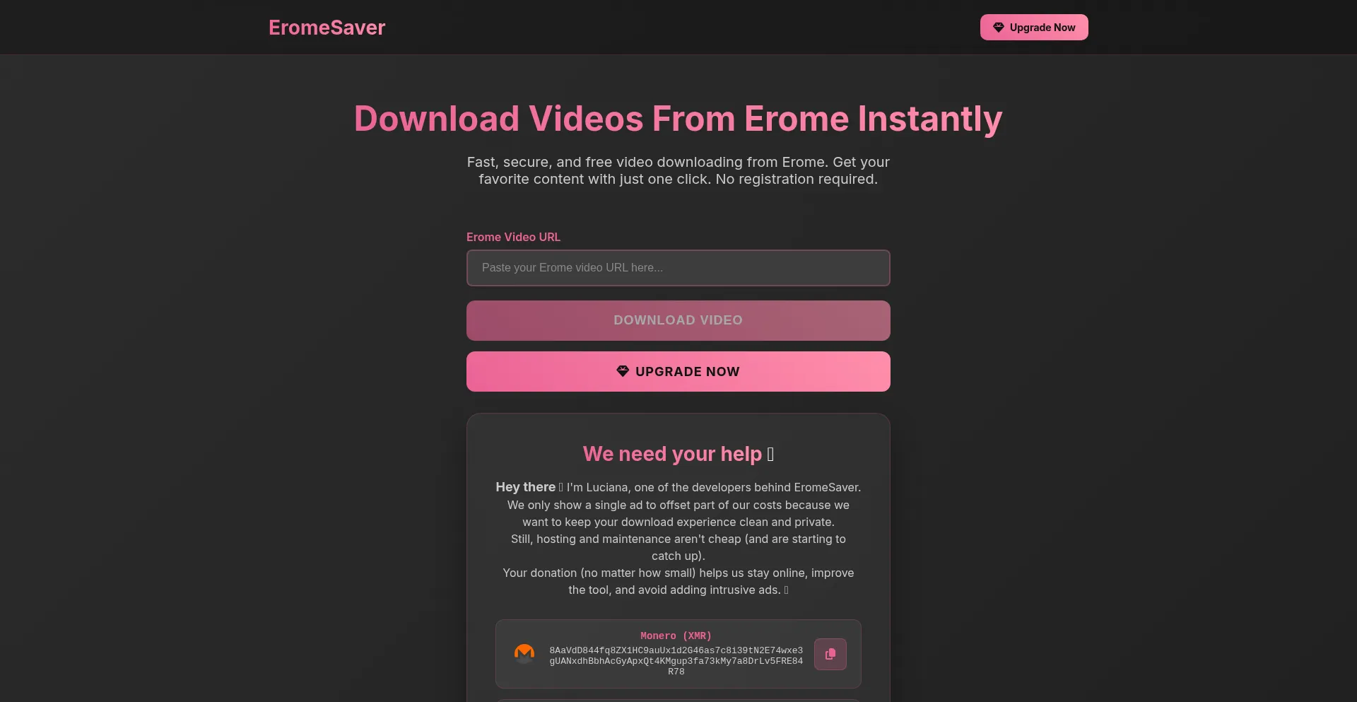 Download videos from Erome instantly with EromeSaver. Free, fast, and secure video downloading tool. No registration required. Download in HD quality.