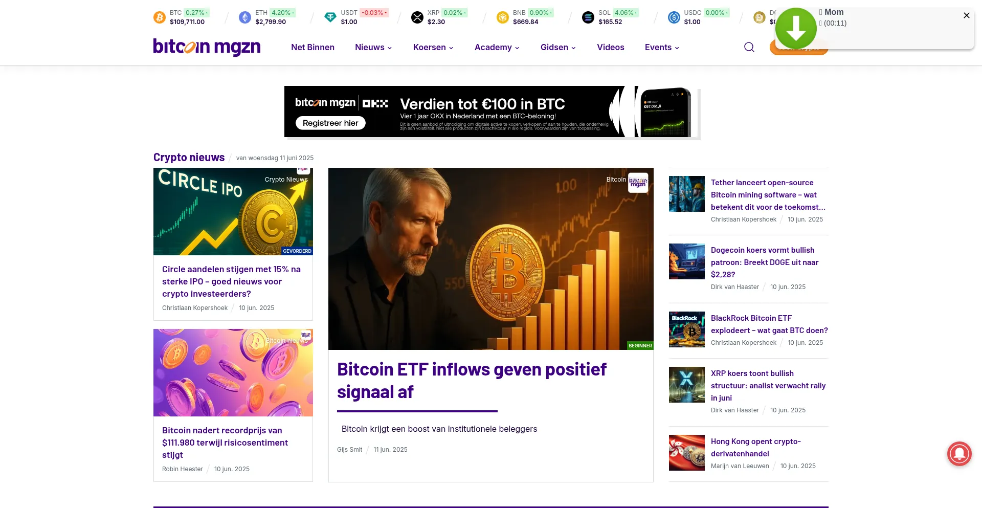 Bitcoin en crypto nieuws lees je dagelijks op dé nummer 1 van Nederland en België. Leer over Bitcoin, Ethereum, Blockchain en meer crypto!