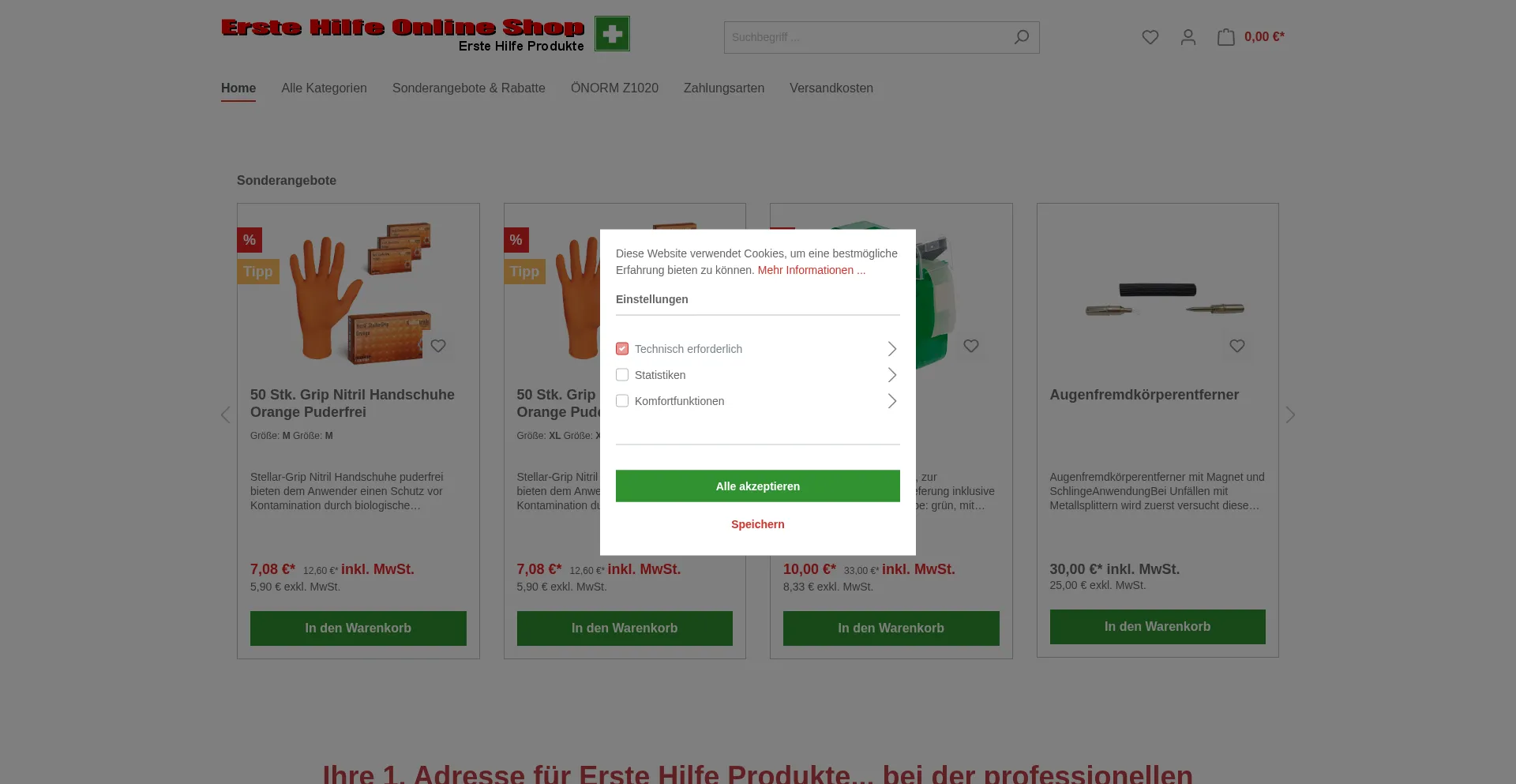 Willkommen beim Erste Hilfe Online Shop - die erste Adresse für Verbandszeug, Defibrillatoren, Notfallsets in Österreich, Deutschland & Schweiz.