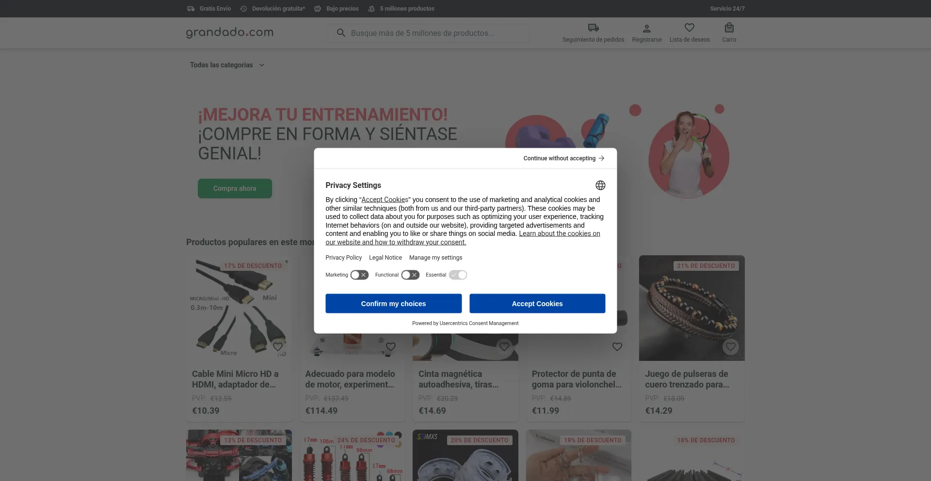 es.grandado.com 使用 Google Tag Manager 在其网站上添加和更新追踪代码(标签)。