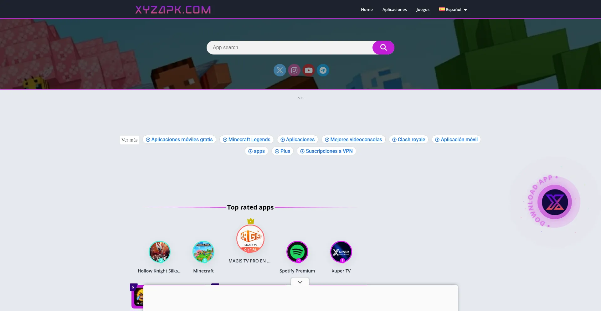 网站上存在社交媒体链接表明 es.xyzapk.com 在社交媒体上维护官方账户,这是可信度和参与度的积极信号。