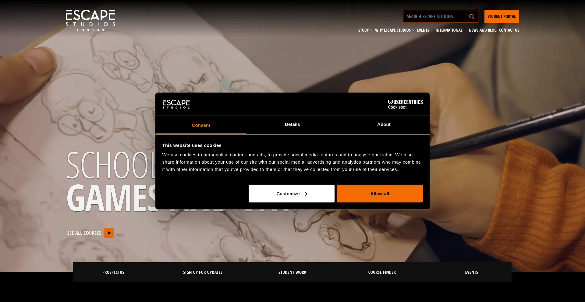该网站实现符合GDPR或CCPA等隐私法规的cookie同意机制。这表明 escapestudios.ac.uk 遵守数据保护标准并为用户提供对个人数据收集实践的控制。