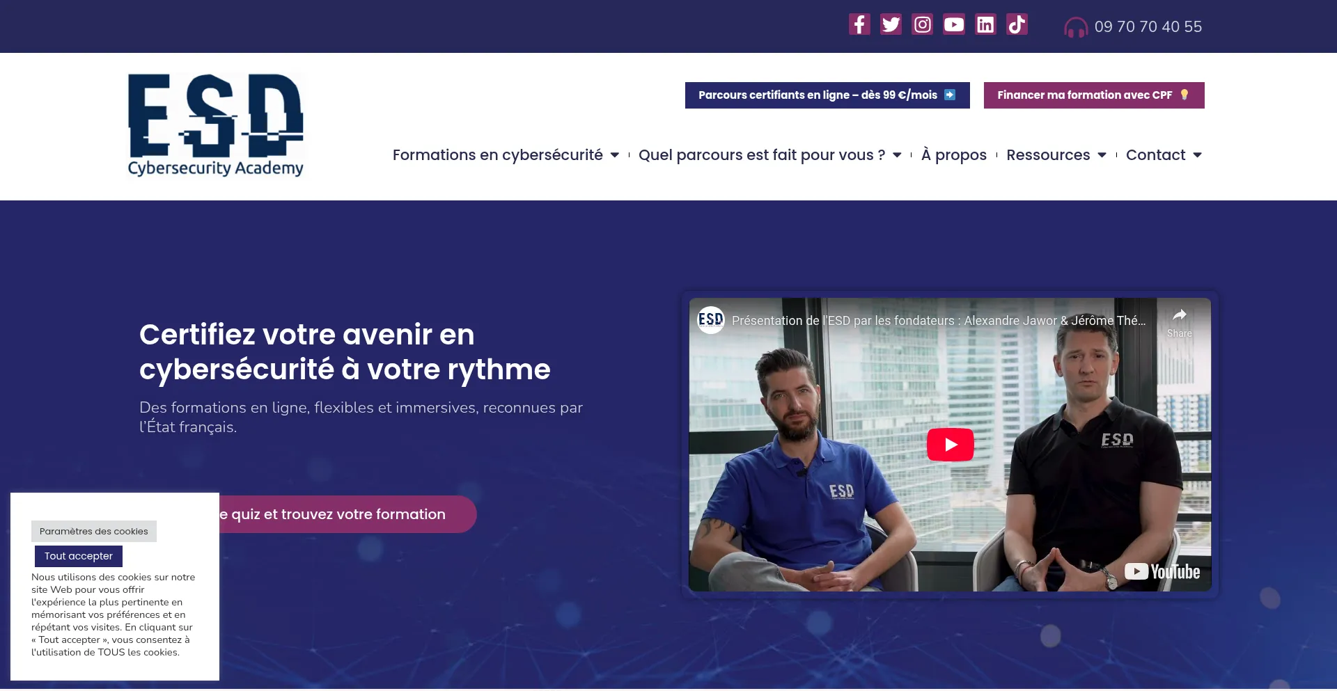 网站上存在社交媒体链接表明 esdacademy.eu 在社交媒体上维护官方账户,这是可信度和参与度的积极信号。