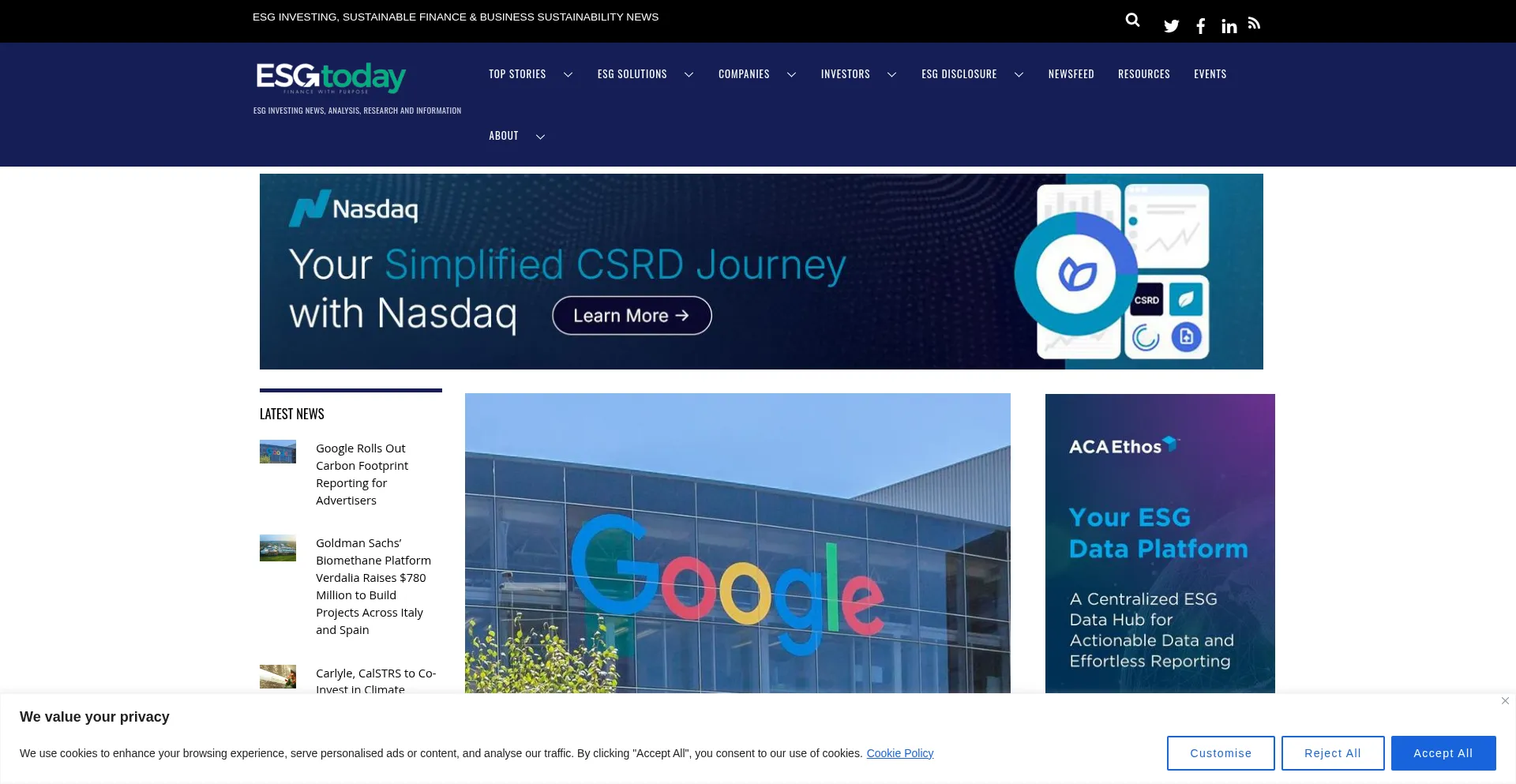 该网站实现符合GDPR或CCPA等隐私法规的cookie同意机制。这表明 esgtoday.com 遵守数据保护标准并为用户提供对个人数据收集实践的控制。