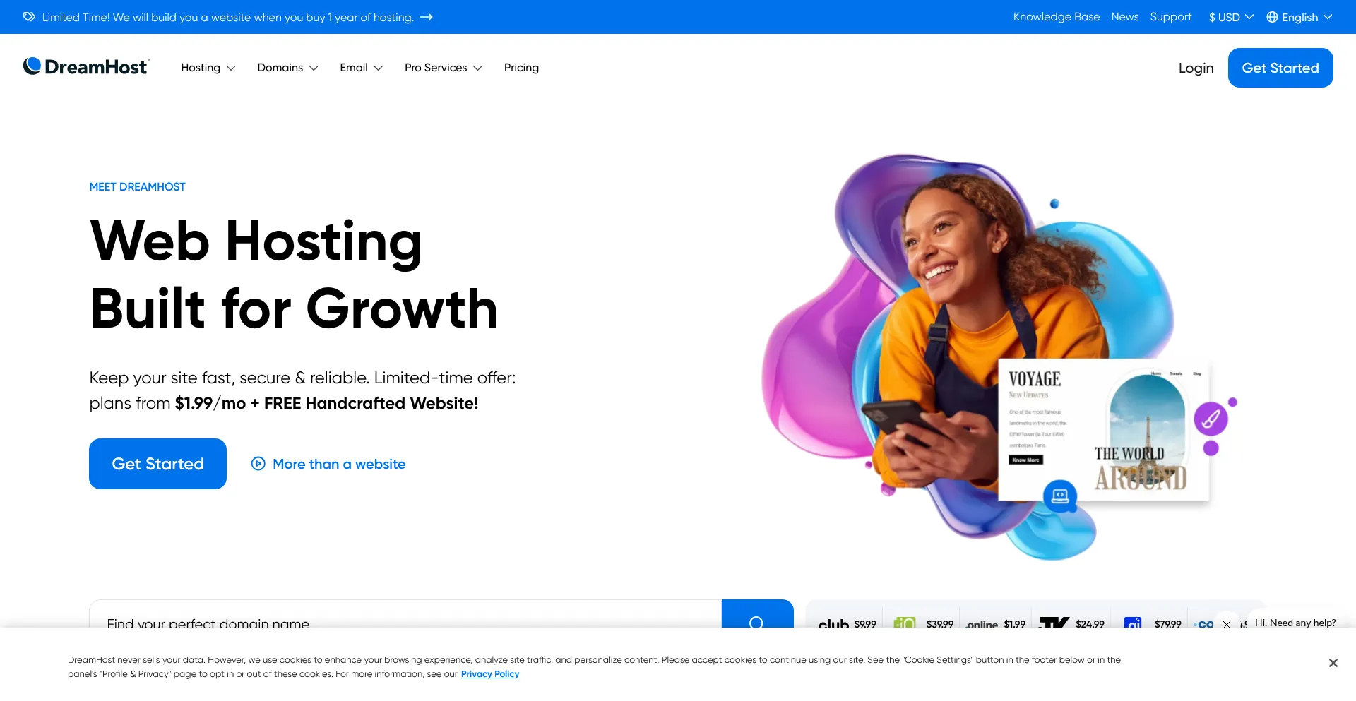 DreamHost offers domain names, web hosting, managed WordPress hosting, business email, and much more. 100% uptime guarantee, 24/7 support. Sign up today!