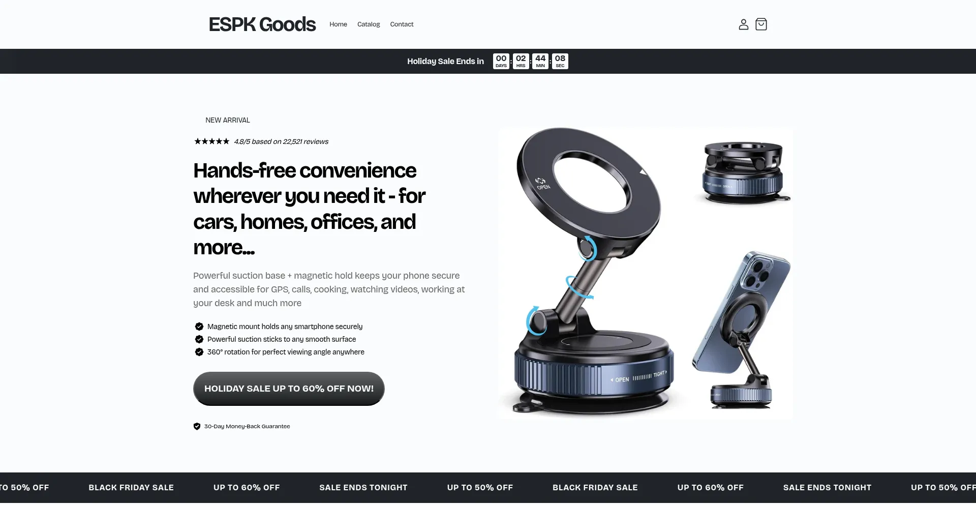 分析表明 espkgoods.com 作为电子商务平台运营,促进商品或服务的在线交易。该网站实现了购物车功能、支付处理系统和产品目录功能,这些是商业零售运营的典型特征。