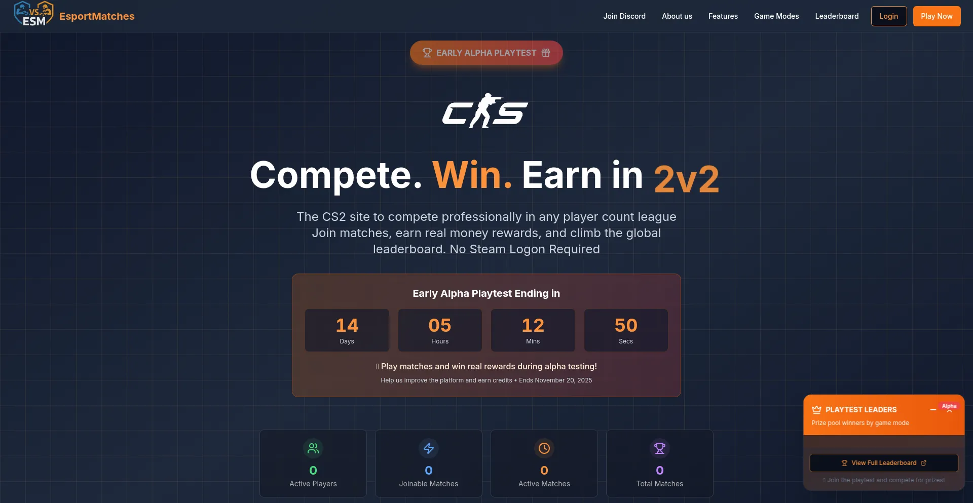Join EsportMatches, the premier competitive Counter-Strike 2 platform. Compete in 1v1 to 5v5 matches, win real money prizes, and climb global leaderboards. Anti-cheat protected,...