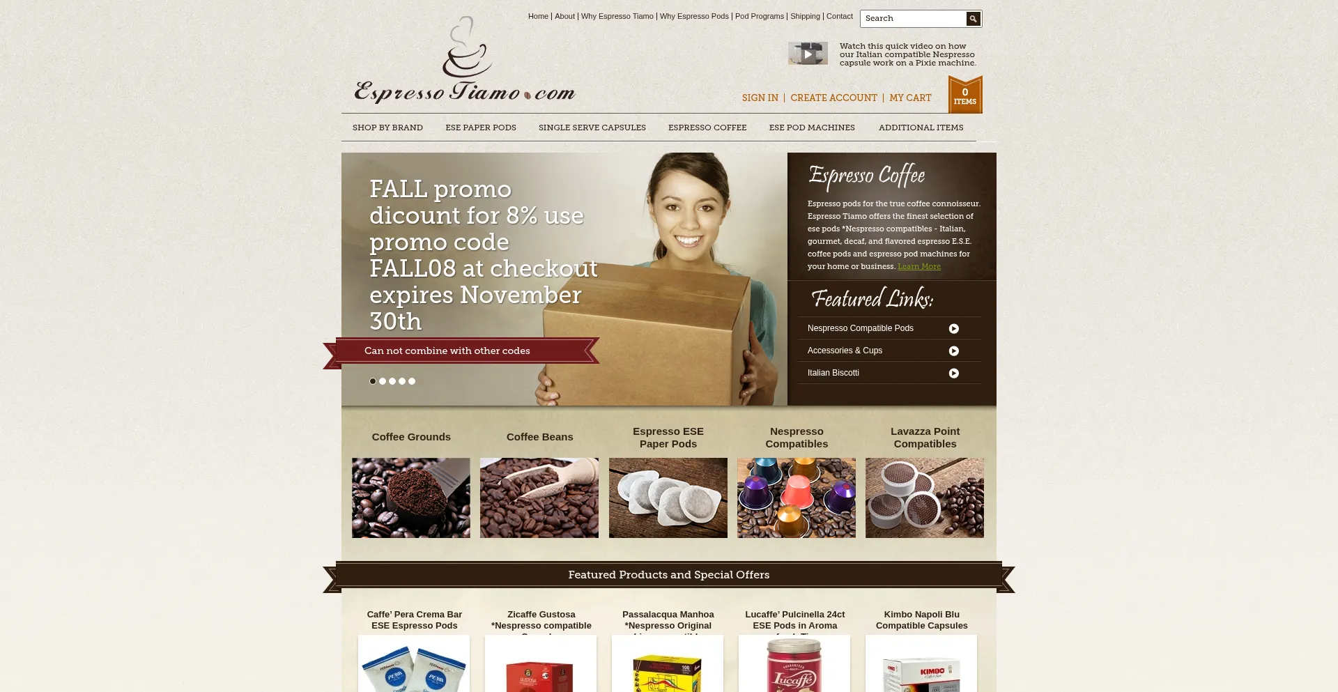 Espresso Tiamo offers best prices on ESE pods, espresso pods, imported Italian ground and whole expresso beans and Italian espresso pod machines.