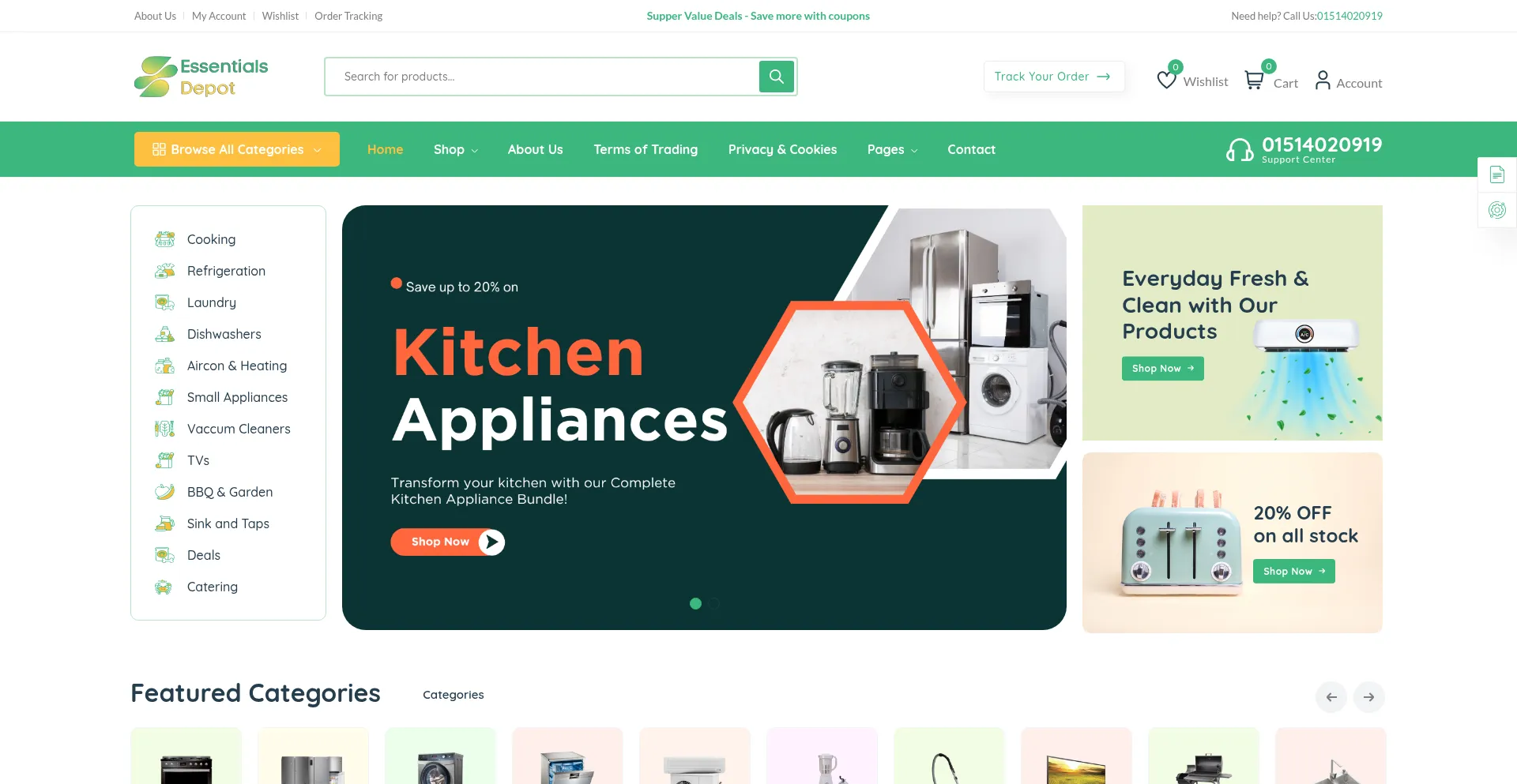 分析表明 essentialsdepot.co.uk 作为电子商务平台运营,促进商品或服务的在线交易。该网站实现了购物车功能、支付处理系统和产品目录功能,这些是商业零售运营的典型特征。